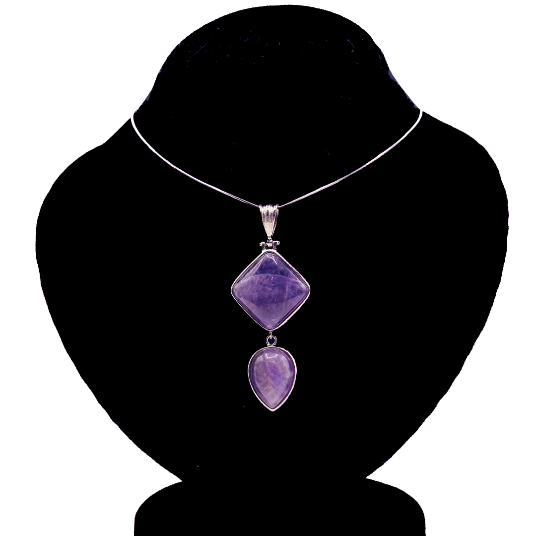 Jawa Gems' Amethyst Pendant in Double Step Design exudes sophistication and charm. The striking geometric design highlights the stunning purple hue of Amethyst, a gemstone known for promoting tranquility, mental clarity, and healing. The double step structure adds depth and dimension, creating a unique and modern look. This pendant serves as a powerful tool for personal transformation, helping to clear negative energy and enhance spiritual awareness, while offering a bold statement of style.