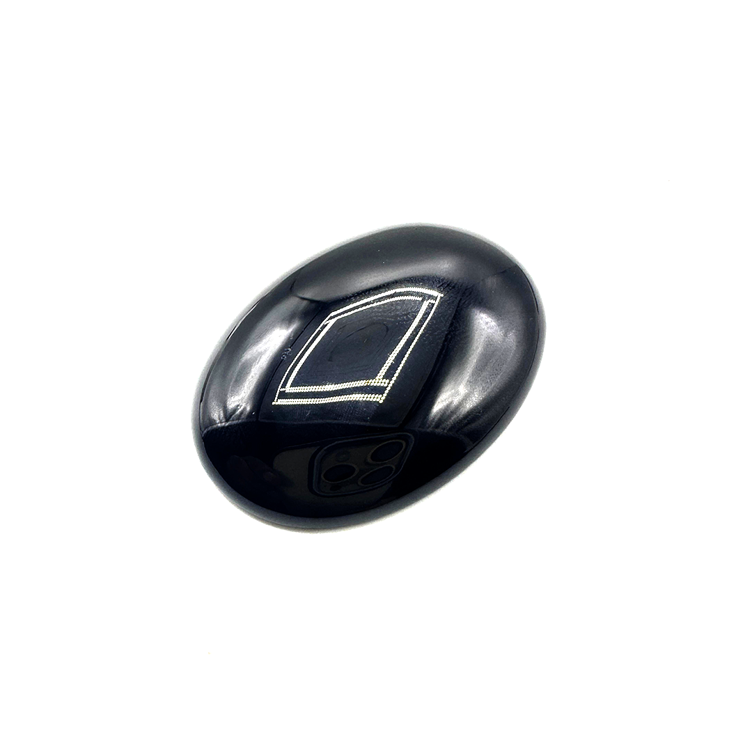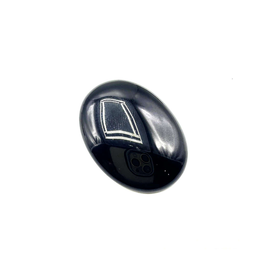 Black Agate is an appealing 57.1-carat stone and polished variety of agate with intense layers of black color. It is well known for its earth-anchored abilities. As a stone that increases protection, stability, and inner strength, black agate is in high demand from people seeking an equal balance of the mind. It has an elegant look, and its high-quality natural form is irresistible. Black Agate is an empowering and timeless stone for any jewelry.
