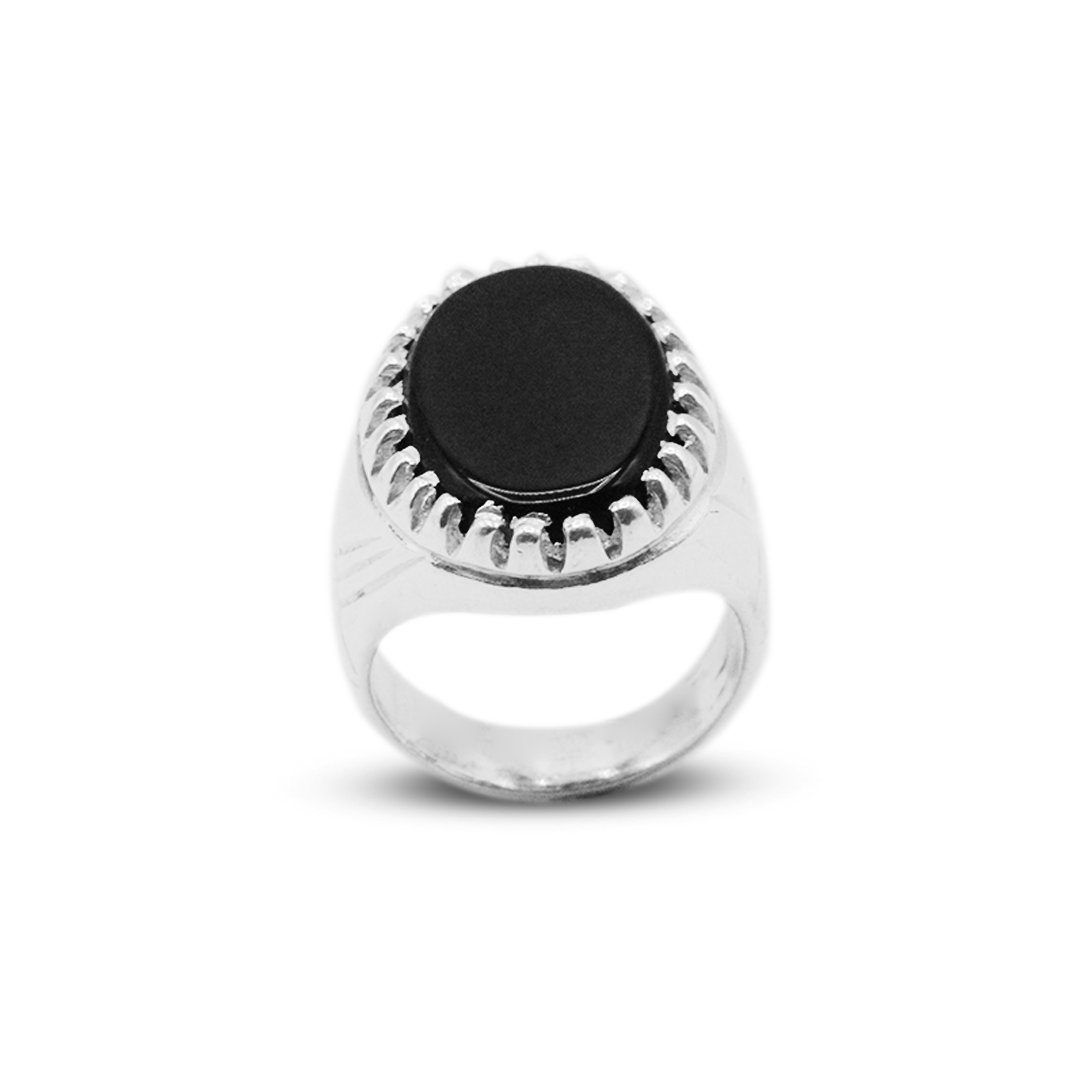 Giving men the perfect accessory to add some elegance to their masculine looks, Jawa Gems brings a modern architectural look in the form of Architect Band Design. The intricacies of this ring are carved with high attention to detail, featuring this captivating black agate stone seated within the sleek, minimalistic band. This Black Agate Men Ring by Jawa Gems is a sophisticated, versatile creation that easily fits with every style.