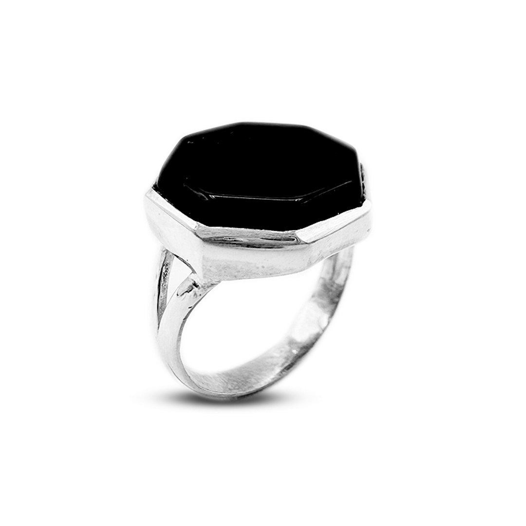 This stylish Black Agate Women Ring by Jawa Gems combines spiritual significance with modern design. The sleek Octa V Band sets the octagonal black agate stone, which gives it a distinctive and edgy appearance. It is perfect for women who enjoy wearing jewelry to show off their uniqueness. The Octa V Band is a distinctive piece that offers a unique design.