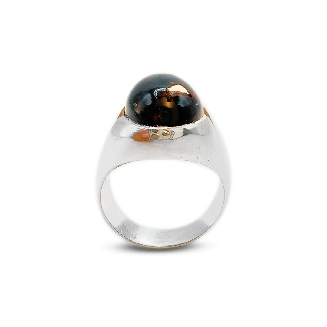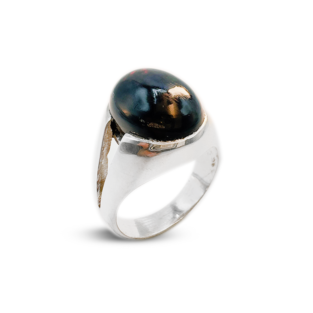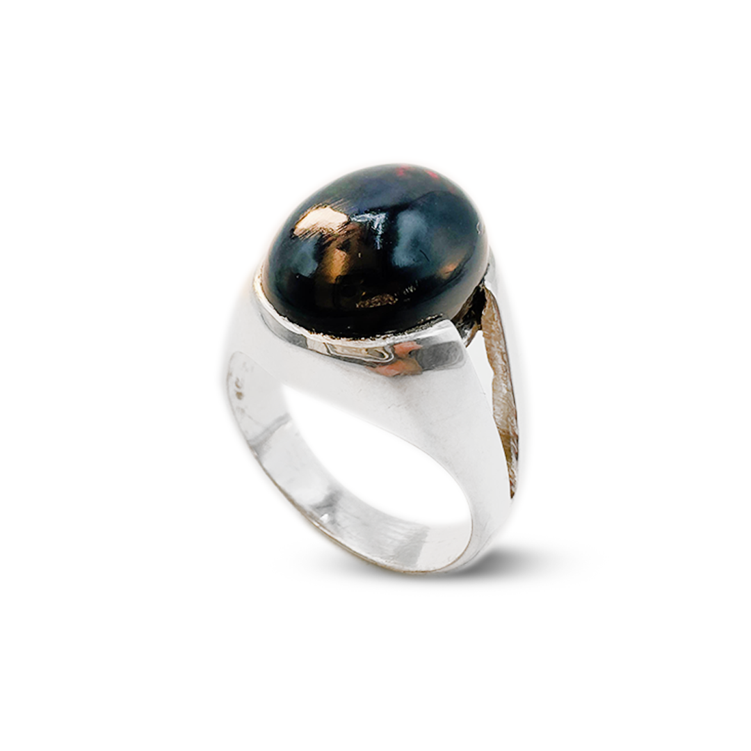 Embrace divine beauty with the Black Opal Men's Ring presented by Jawa Gems. This extraordinary piece features a gorgeous black opal set in a special Half-Moon shape, signifying harmony and balance. Made with great care and precision using premium materials, it is ideal for people who value distinctive, deep designs.