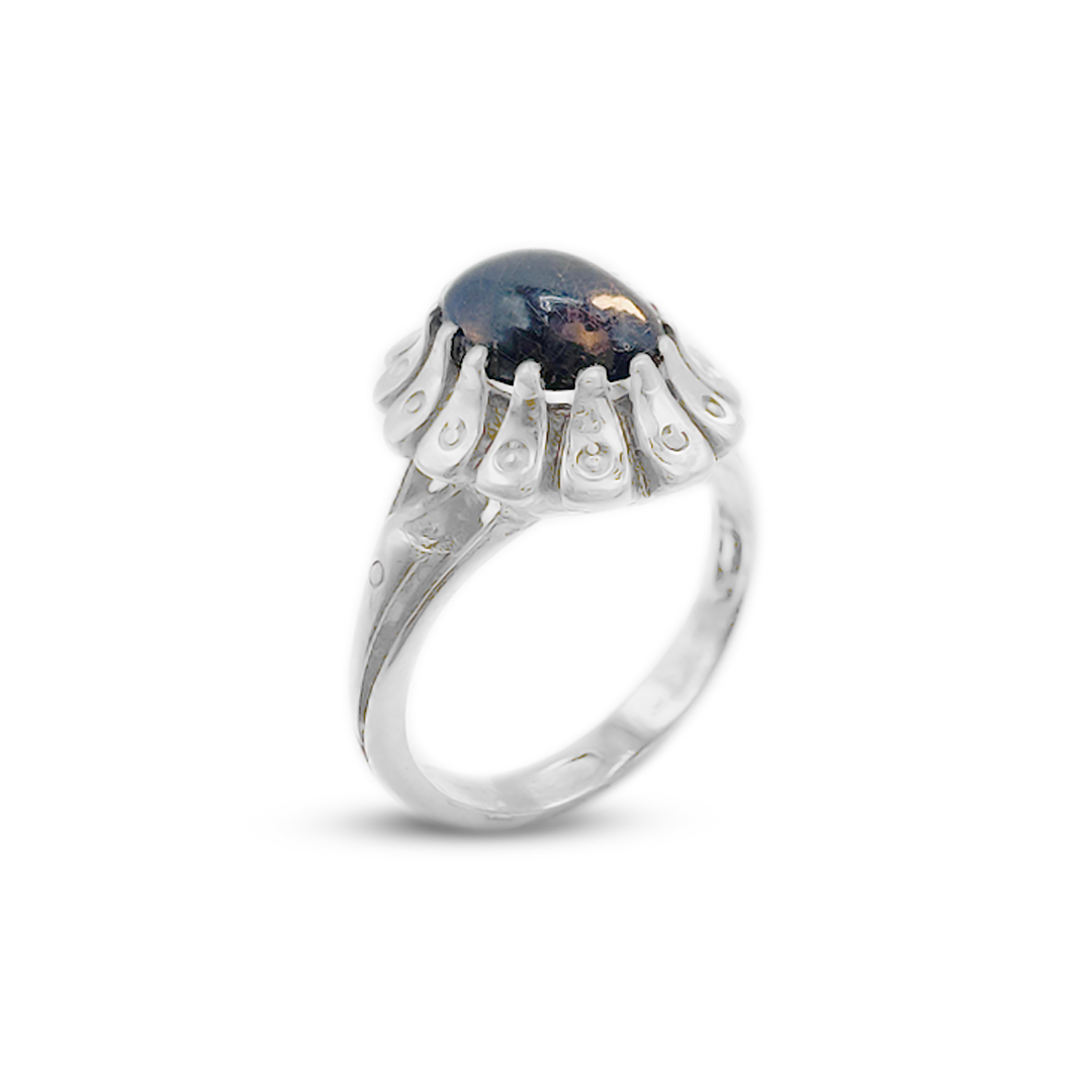 Take in the beauty of modern design with the Black Opal Women Ring by Jawa Gems. The striking black opal is set in a cup setting, enabling its rich colors to take center stage in this beautiful item. The simple band enhances the opal's brilliance, which gives it a chic appearance. The Daze Cup Ring is precisely crafted and combines classic elegance with modern design.