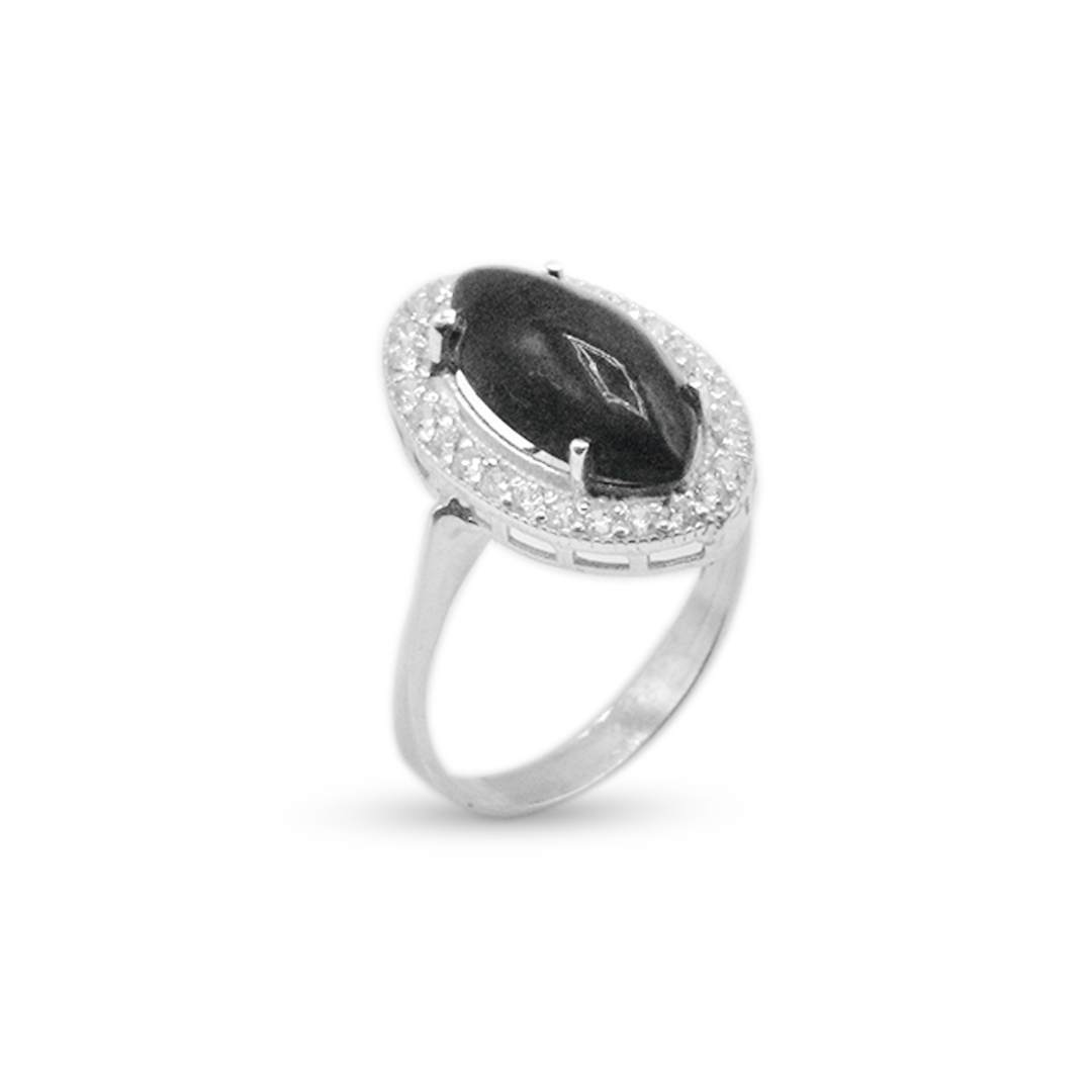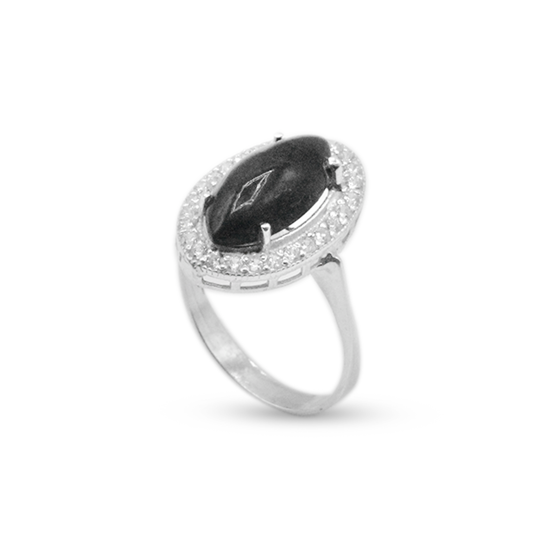 Black Opal Women Ring – Drop Halo
