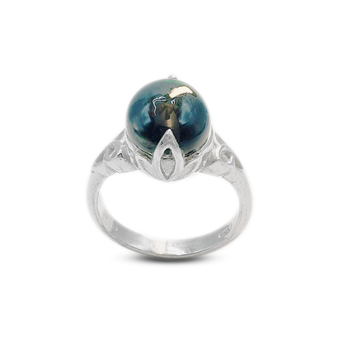 Experience the beauty of nature with this Black Opal Women Ring presented by Jawa Gems. This stunning jewelry has a fascinating black opal set against a delicate ring with a Leaf Band Design. The organic elegance of the leaf design combines nicely with the dark, iridescent colors of the opal, resulting in a harmonious blend of natural components.