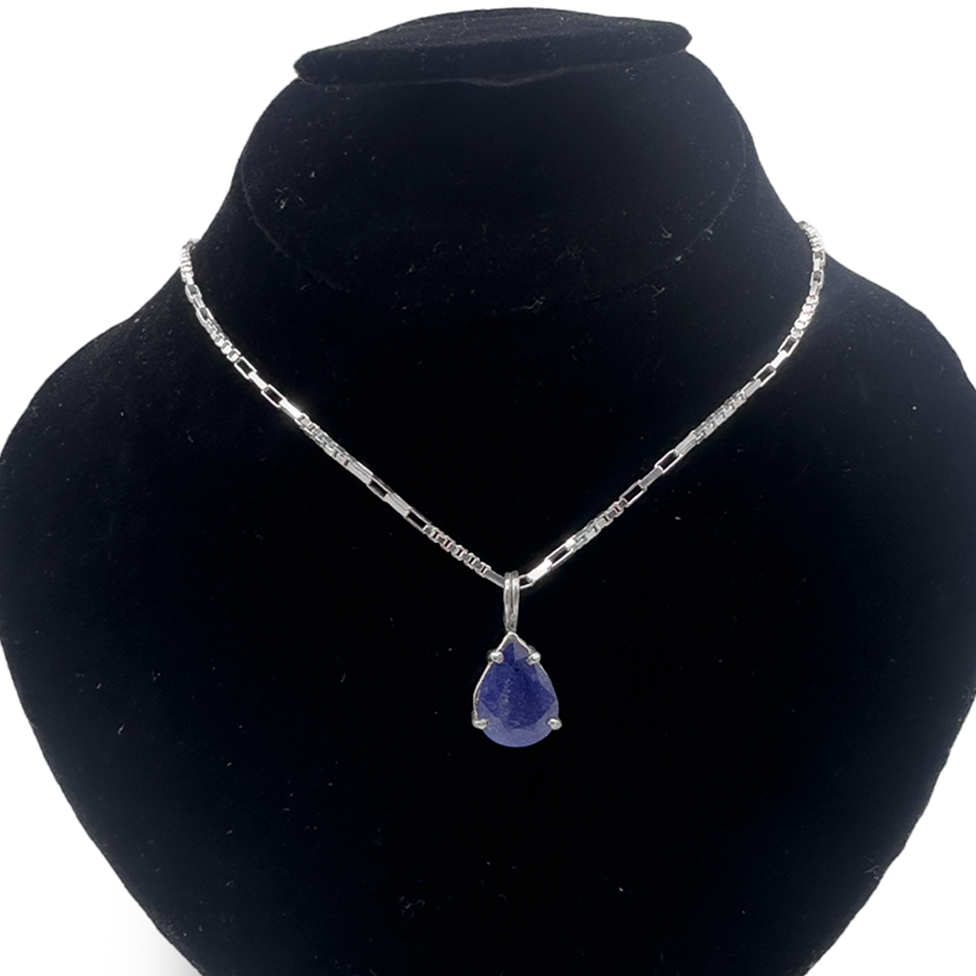 This Blue Sapphire Pendant in Gloop Drop Design showcases a unique, contemporary take on a drop pendant. Set in pure silver, the pendant features a stunning blue sapphire gemstone that drips elegantly from the setting. The unique design makes it a standout piece, perfect for those who love modern, artistic jewelry. Ideal for both day and evening wear, it adds a bold, luxurious touch to any outfit.