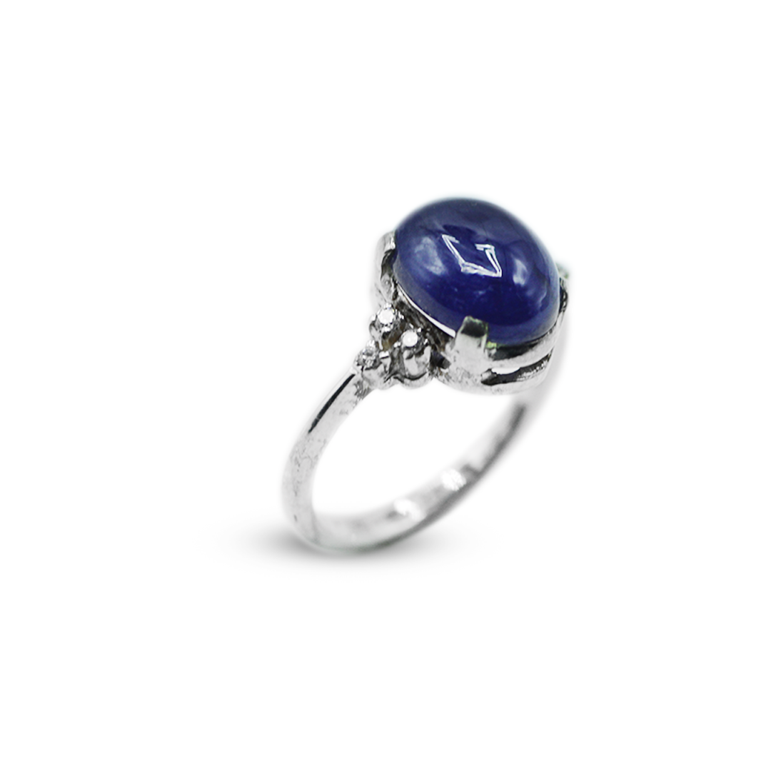 Blue Sapphire Women Ring – 3 Zircon Band Design