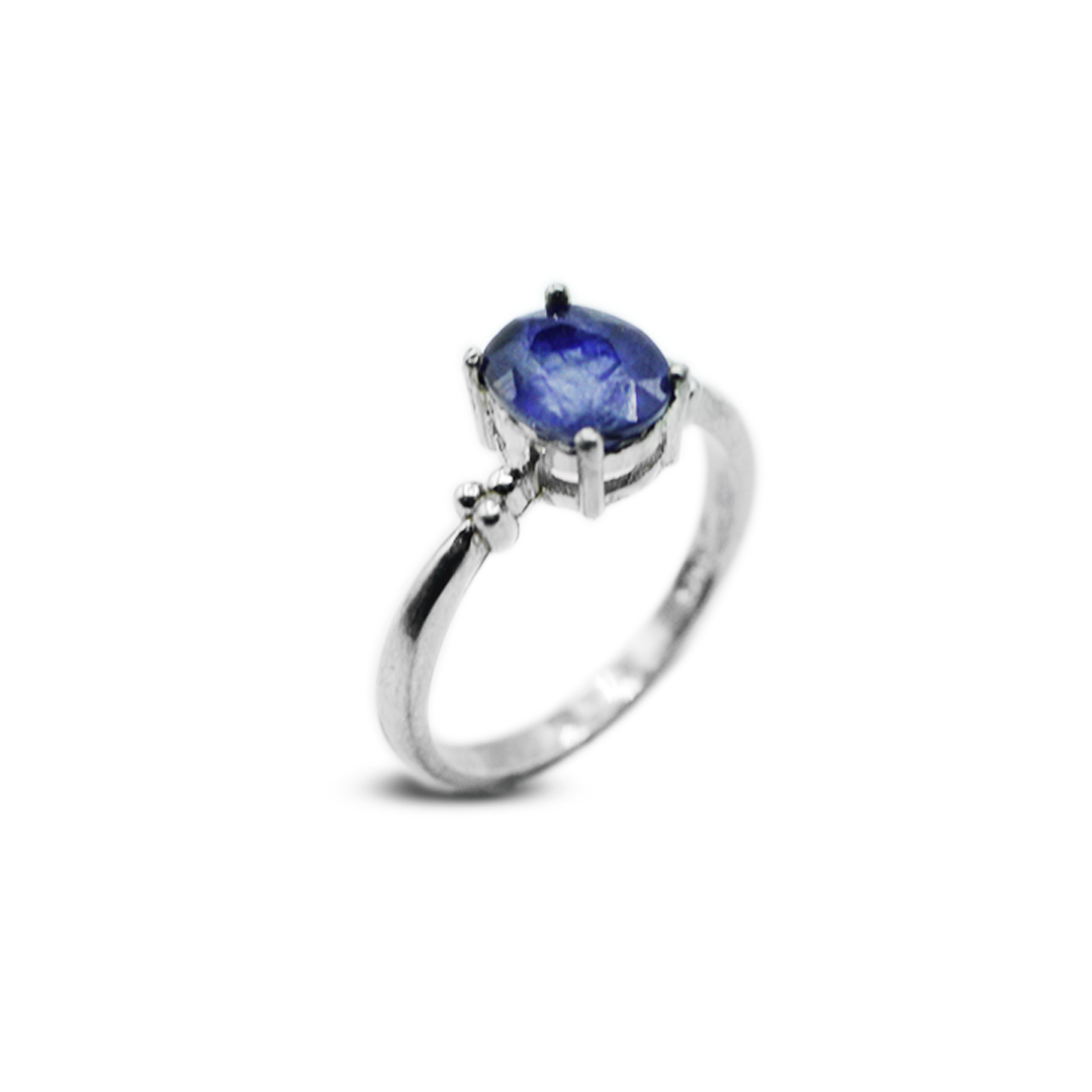 The Blue Sapphire Women Ring in Dot Band Design by Jawa Gems has a beautiful look. This stunning piece combines traditional style with new-fashioned grace. The beautiful blue sapphire, carefully set in a band of metal dots, shows classic elegance. This beautiful ring is a sign of excellent taste and lasting beauty that will make your jewelry collection stand out.