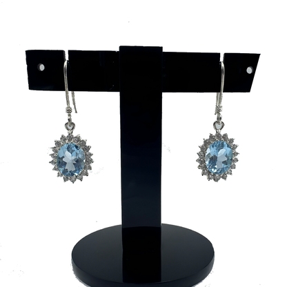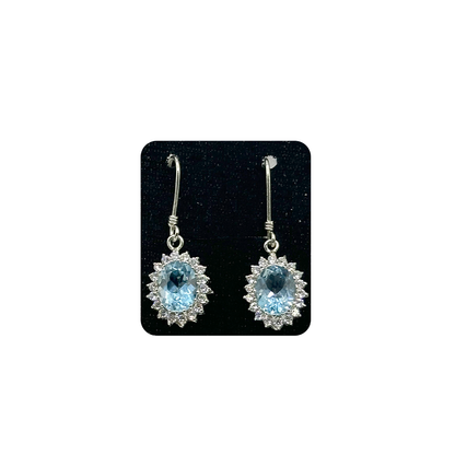 These Blue Topaz Earrings feature a captivating Halo Drop design, crafted from pure silver. The vibrant blue topaz gemstones exude an elegant radiance, encircled by a halo of sparkling accents. The design enhances the stone’s brilliance, making these earrings the perfect addition to any jewelry collection. Timeless yet modern, they are ideal for both casual and formal occasions, offering elegance and sophistication with every wear.