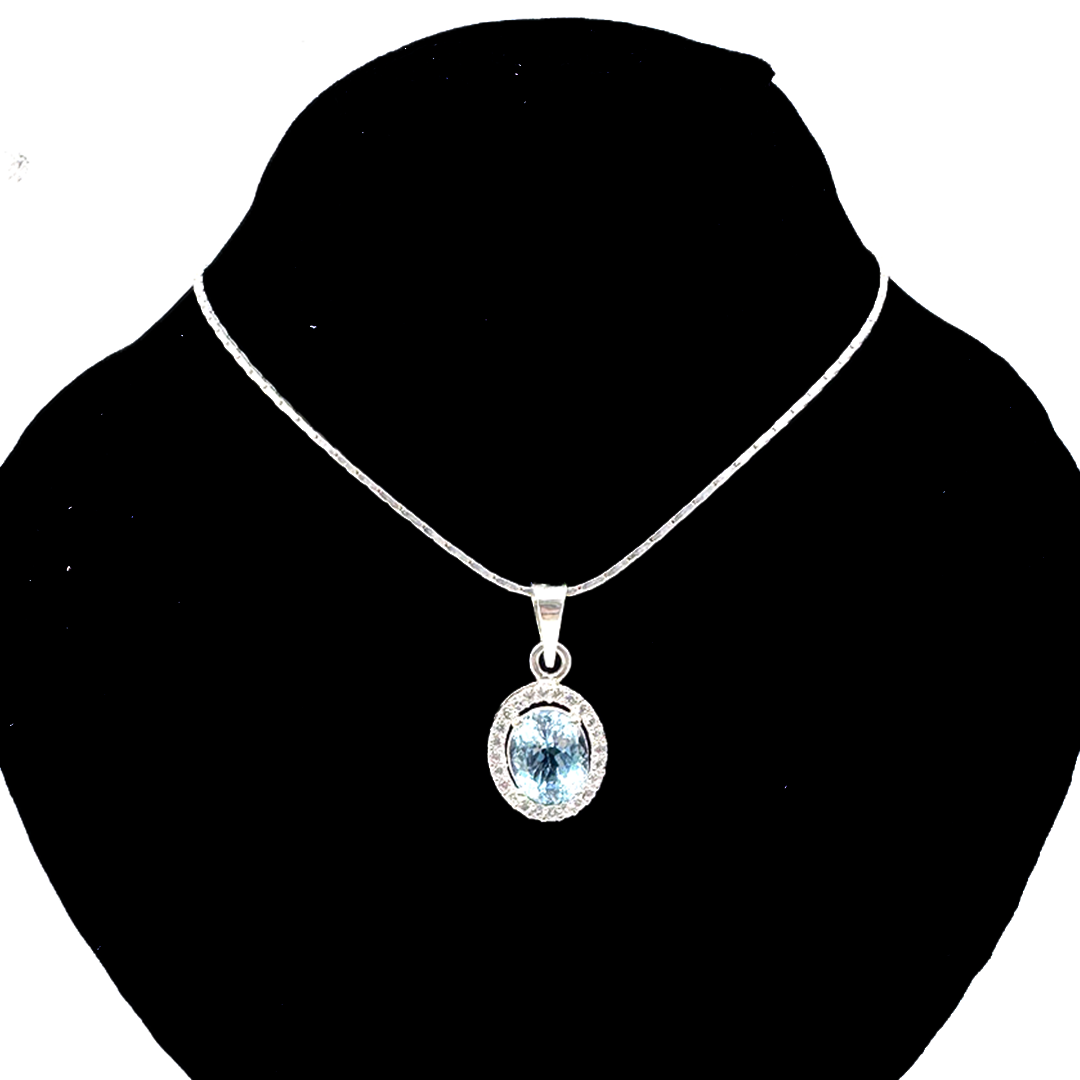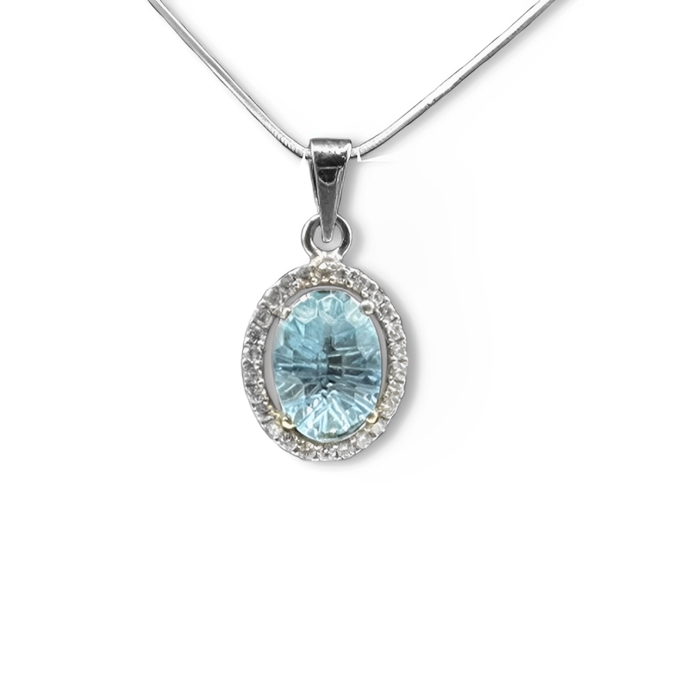 The Blue Topaz Pendant in a Halo Ovalatte design features a dazzling oval-shaped blue topaz gemstone surrounded by a sparkling halo. Made from pure silver, this pendant highlights the topaz’s natural vibrancy and clarity. The elegant design is perfect for any occasion, adding a sophisticated and modern touch to your jewelry collection. Its timeless beauty makes it an ideal accessory for both casual wear and evening events.