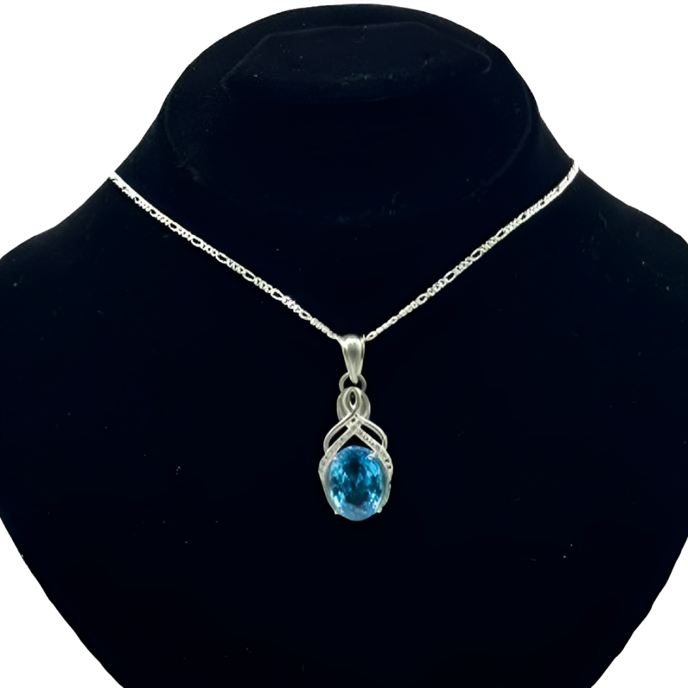 Capture the serene beauty of the Blue Topaz Pendant with its elegant Serenity Drop design, crafted from pure silver. The calming blue topaz gemstone dangles gracefully, reflecting light with every movement. This pendant exudes peace and sophistication, making it a perfect gift or an elegant accessory for any occasion. Its timeless design and gemstone properties offer both style and meaning, adding a tranquil touch to any look.