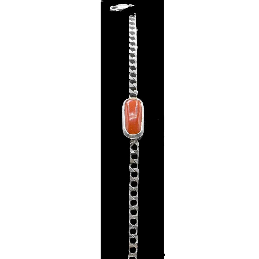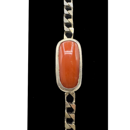 Simple yet refined, the square chain design of this bracelet offers a contemporary twist on traditional coral jewelry. The clean, geometric design highlights the coral's natural warmth, while the pure silver ensures a comfortable and durable fit. Coral is cherished for its emotional healing and soothing qualities.