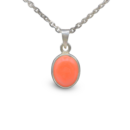 This stunning pendant features an elegant oval badge design, making it an exceptional piece for any occasion. The pure silver setting enhances the vibrant coral, creating a perfect contrast. Coral, known for its healing and protective qualities, helps reduce stress and promotes emotional well-being.