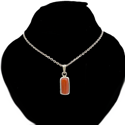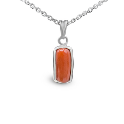 The clear fenced design of this pendant is a masterpiece of contemporary style. The transparent fencing allows the beauty of the coral gemstone to shine, while offering a unique, protective touch. Coral in this pendant supports emotional healing and clarity, while the design promotes protection and safety.