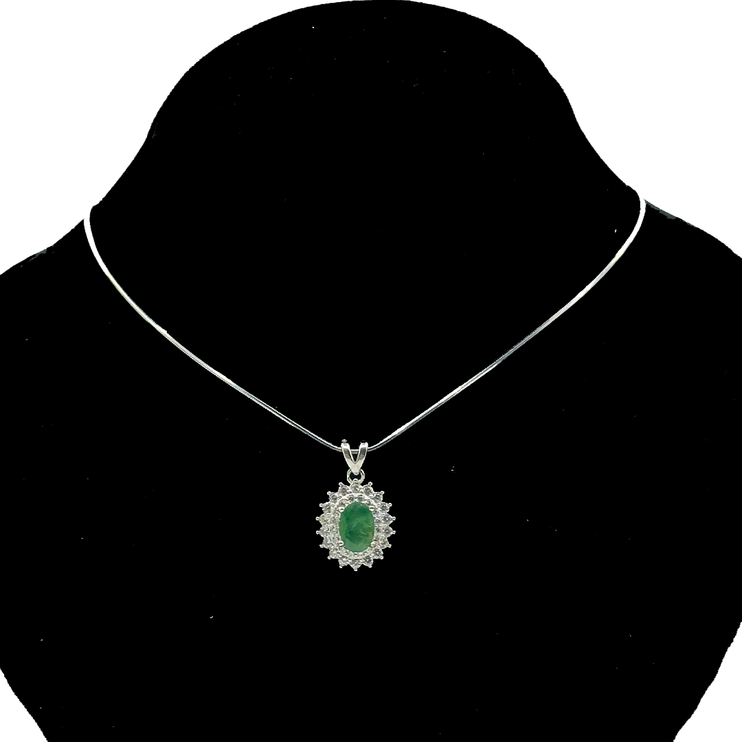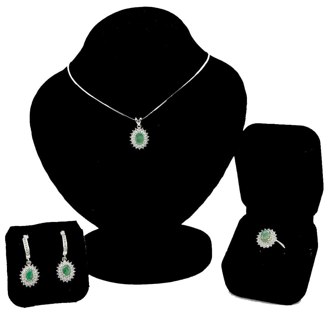 The Emerald Pendant Set in Double Layer Halo Design by Jawa Gems is an elegant and luxurious combination that radiates sophistication. Featuring a stunning emerald gemstone at its core, this set is surrounded by two halos of sparkling zircon, creating an illusion of depth and brilliance. Emeralds are known for their ability to promote love, healing, and emotional balance, while the double layer design symbolizes protection and growth. This pendant set is perfect for those seeking both beauty and spiritual enhancement.