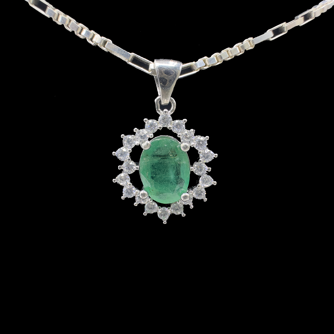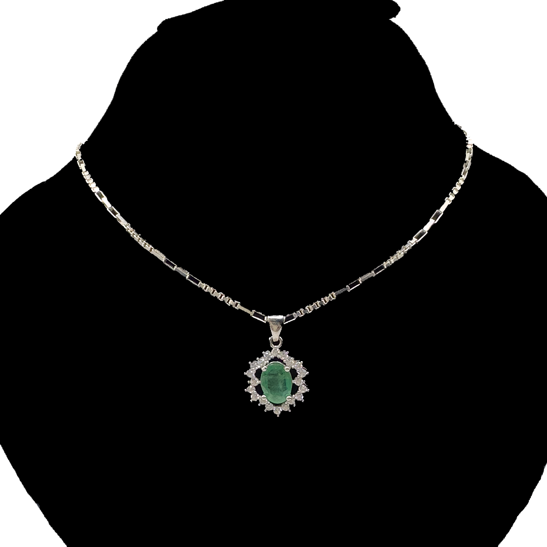 The Emerald Pendant - Zircon Chandelier Design combines the brilliance of emerald with the sparkle of zircon. The chandelier design is intricate and elegant, offering a luxurious look. Emerald is known for its ability to bring abundance and emotional balance, while zircon enhances its beauty. Set in silver, this pendant is the perfect choice for anyone looking to add glamour and healing to their jewelry collection.