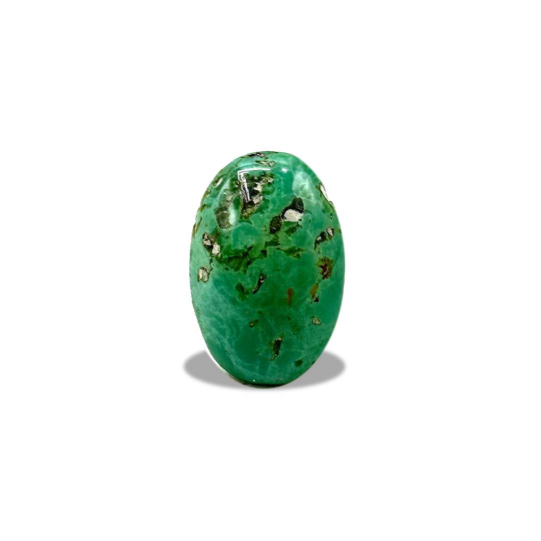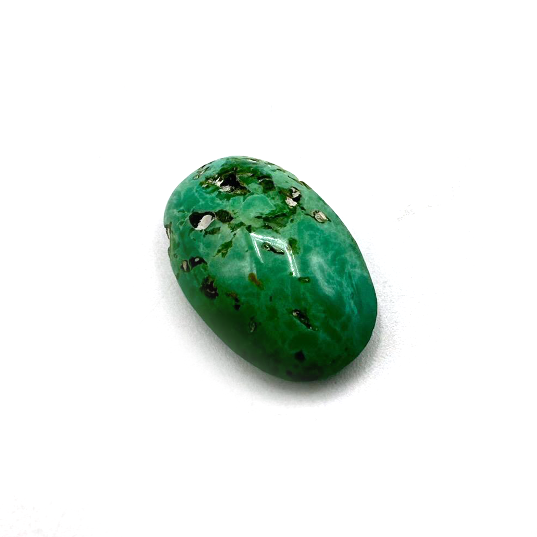 Turquoise Feroza is a charming 12.5-carat stone and unique gem. Its blue-green hue strongly relates to spirituality. It is found in places like Persia and Tibet and is highly sought after for its feroza stone jewelry use and therapeutic properties.