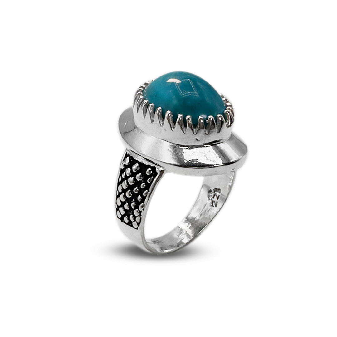 This engravable Feroza Men Ring by Jawa Gems is inspired by the Dome of the Rock in Jerusalem. The chevrons and geometric shapes that alternate in this pattern are taken from architectural elements of the historic structure. A band of sterling silver and the Dome of the Rock Ring provides a strong, yet strikingly beautiful backdrop for this wearable work of art.