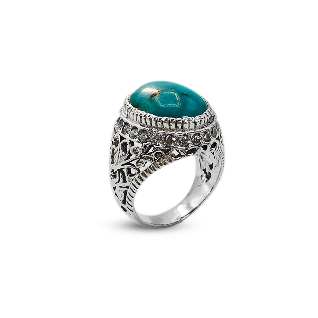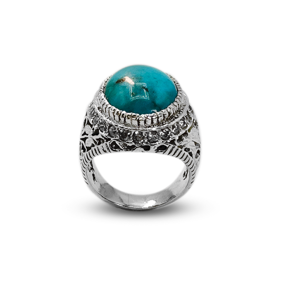 This Feroza Men Ring by Jawa Gems is an absolute charmer with highly representative Persian craftsmanship from this region. The ring comprises an entrancing Feroza gemstone set in sterling silver and lavishly embellished with intricate patterns and motifs that pay homage to the rich cultural heritage of the region. Indeed, the elegant design and exceptional attention to detail bestow a truly regal addition to the Persian Royal Ring and any jewelry collection.
