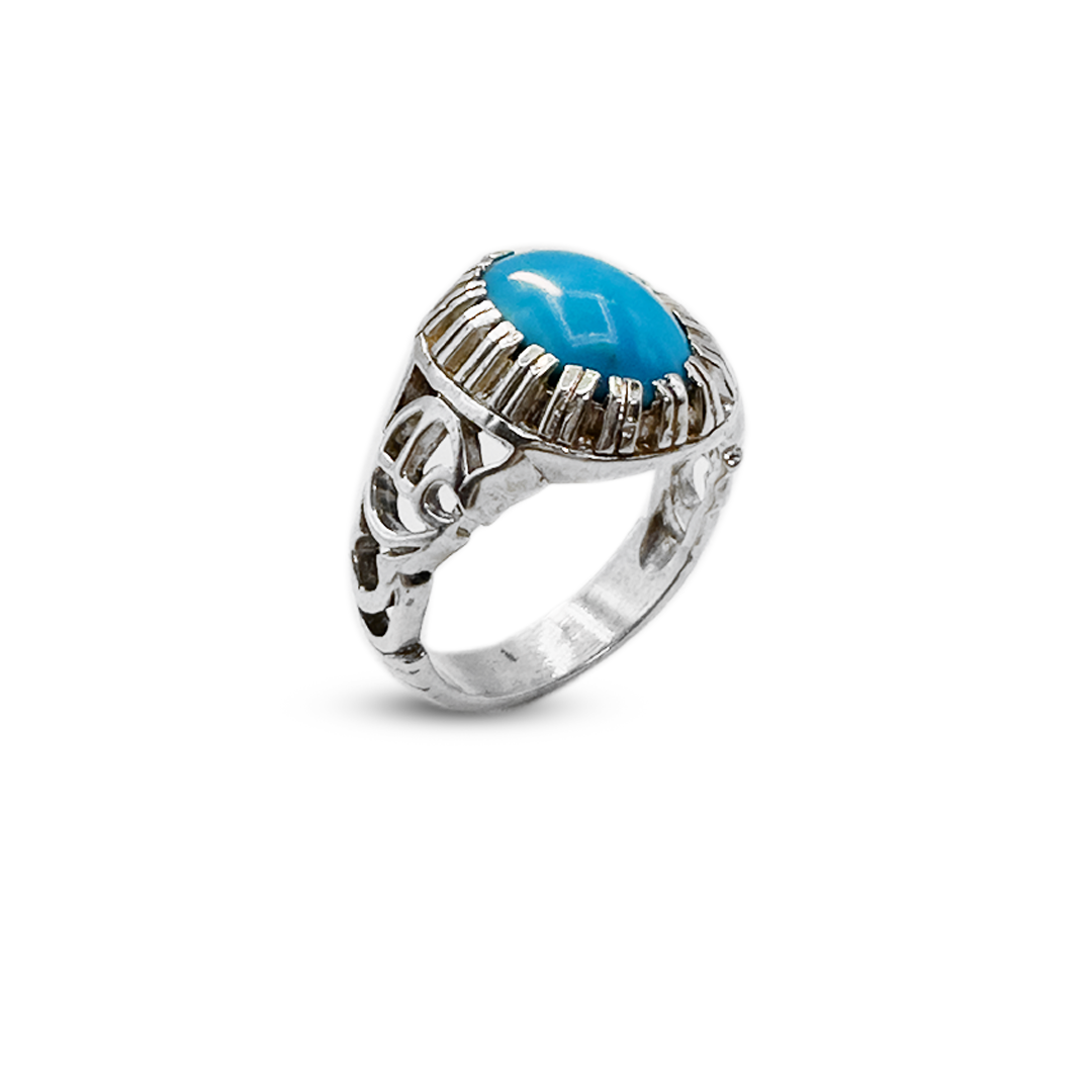 The Byzantine Opulence by Jawa Gems was an epitome that did justice to the very rich cultural heritage left behind by the mighty Byzantine Empire. A feroza stone, mounted on a band of sterling silver with an intricate Byzantine design, makes this Feroza Men Ring a mesmerizing and regal adornment. This ring is sure to stand out in any jewelry box with its richness in tradition blended with modernity.