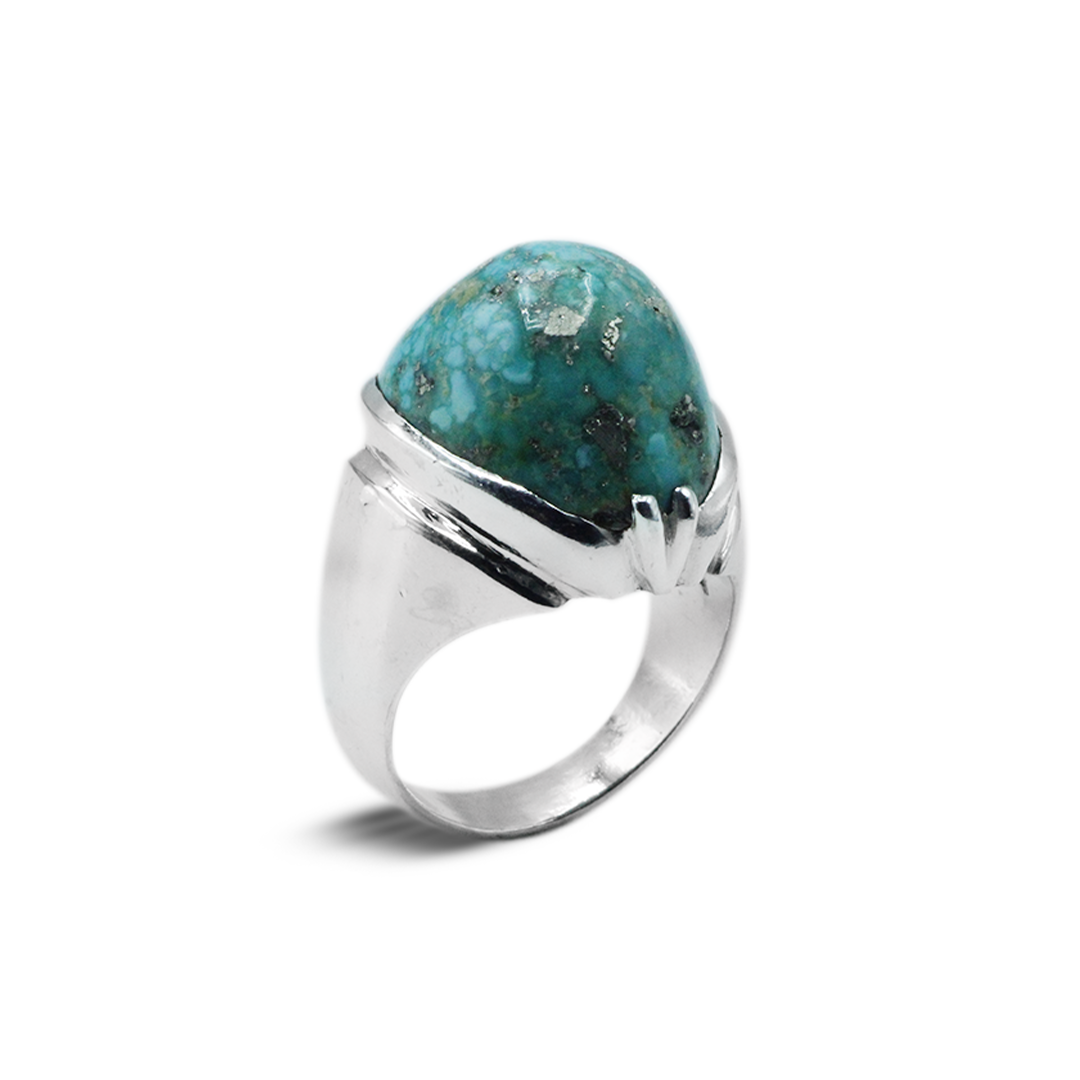 The elegant motion of whirling dervishes served as the inspiration for the Dervish Whirling Feroza Ring created by the talented staff at Jawa Gems'. The piece is distinctive and intriguing because of the dynamic design that showcases the colorful Feroza stone. For individuals who adore creative and expressive jewelry, this Feroza Men's Ring is perfect.