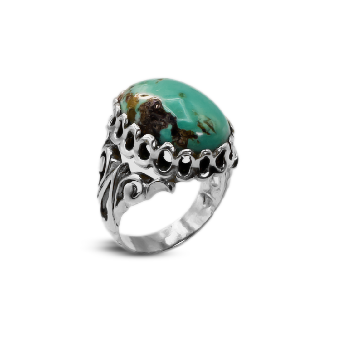 Jawa Gems bring to you the Gothic Revival Ring, an epitome of elegance history, and modernity. This Feroza Men Ring is a reflection of minute details from the Gothic architectural building style, hence best for those who value unique and timeless designs. It's a bold statement piece that adds mystery and sophistication to any attire.