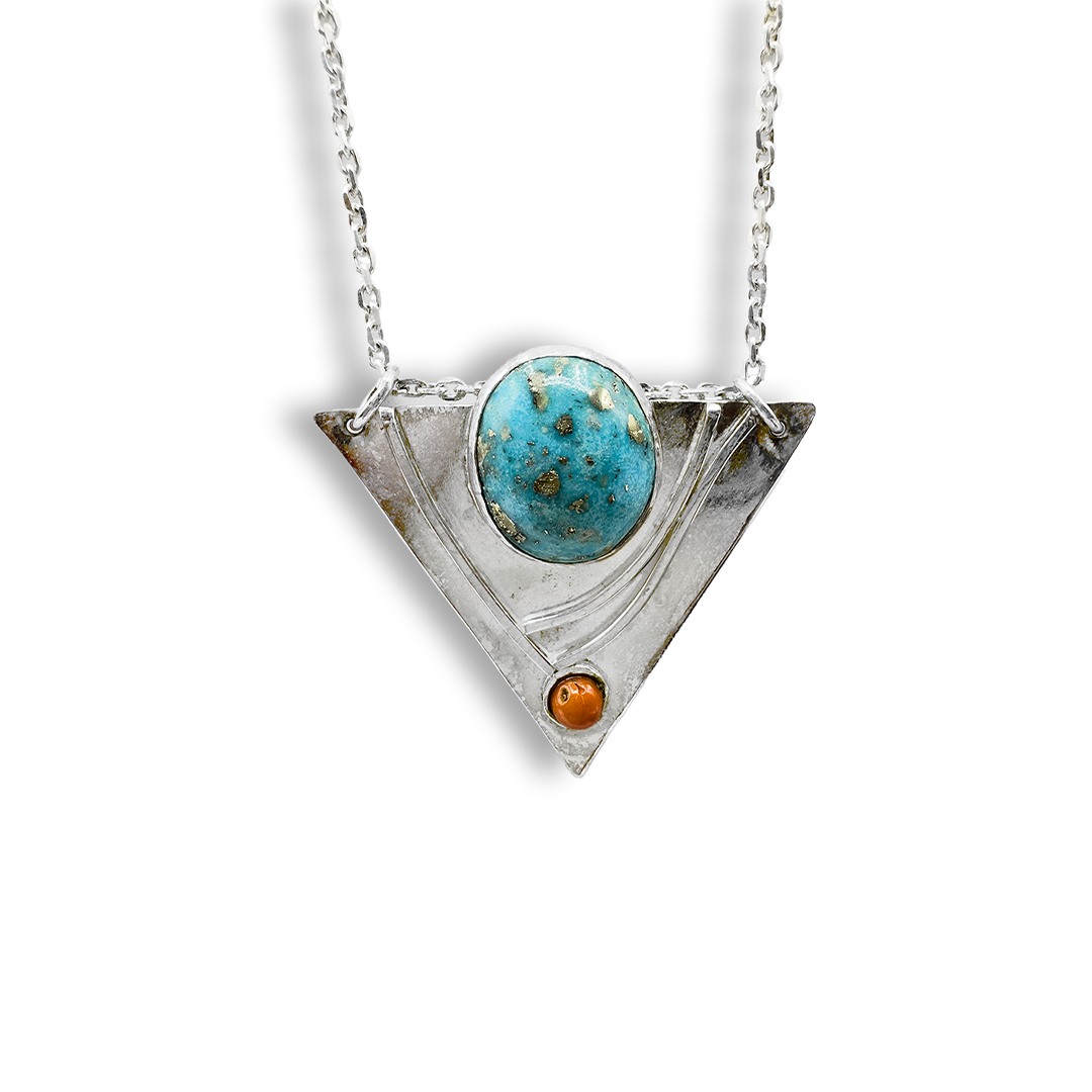 A unique Batmen-inspired Feroza Pendant in pure silver, designed to symbolize courage and transformation. The striking Turquoise stone is known to soothe the mind and bring clarity. The Batmen design represents resilience and freedom, making this pendant a powerful accessory for those looking to combine bold style with the calming properties of Turquoise. A statement piece for any collection.