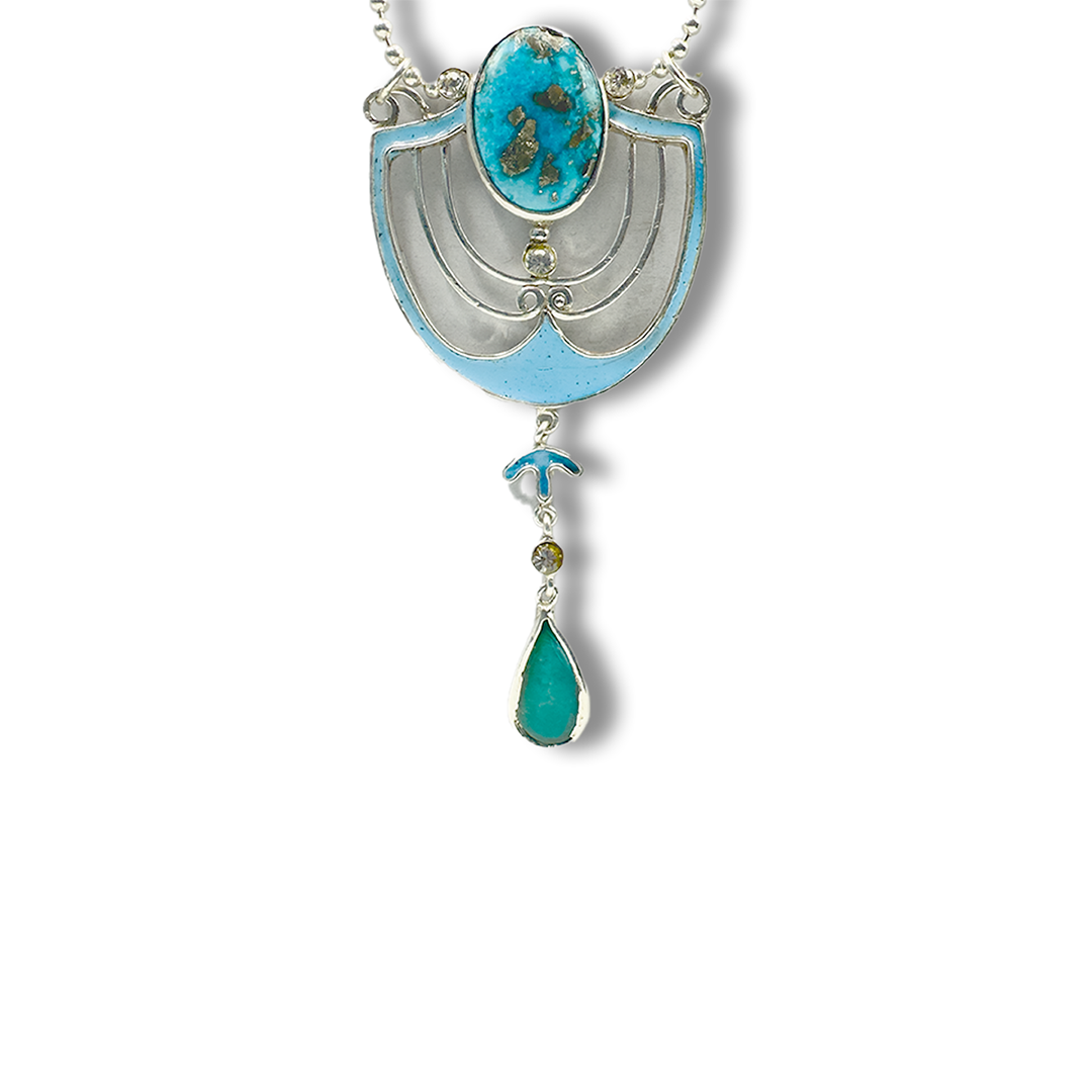 The Egyptian Crown Design Feroza Pendant, made in pure silver, channels ancient elegance with the power of Turquoise. Known for its calming and protective properties, Turquoise helps in emotional healing and enhancing wisdom. The Egyptian crown design symbolizes strength and royalty, making it perfect for those who appreciate timeless design and wish to carry the energy of power and protection.