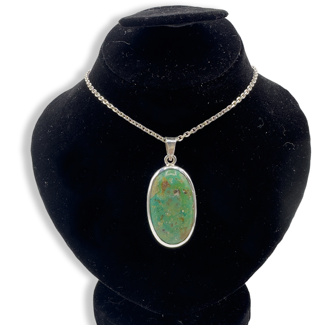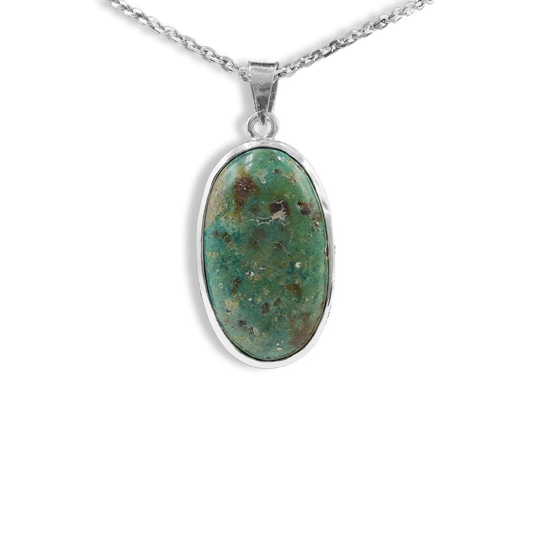 The Silver Tape Design Feroza Pendant combines modern artistry with the healing power of Turquoise. Made in pure silver, this pendant features a sleek, tape-inspired design that wraps around the vibrant stone. Turquoise is cherished for its protective properties and ability to promote clear communication. This contemporary design is perfect for those who appreciate clean lines and the spiritual benefits of Turquoise.