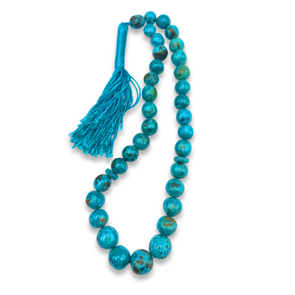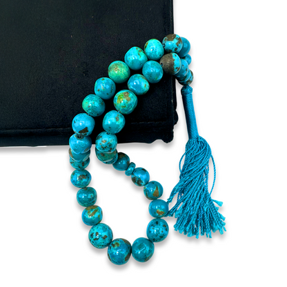 Featuring 6 to 12mm Feroza beads, this Tasbih brings balance, healing, and positivity. Feroza is known for its calming and grounding energies, making it perfect for spiritual practices.