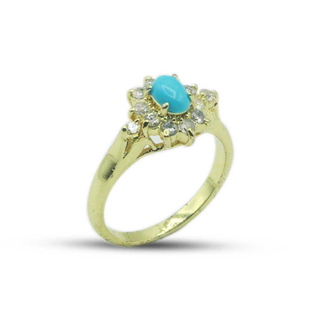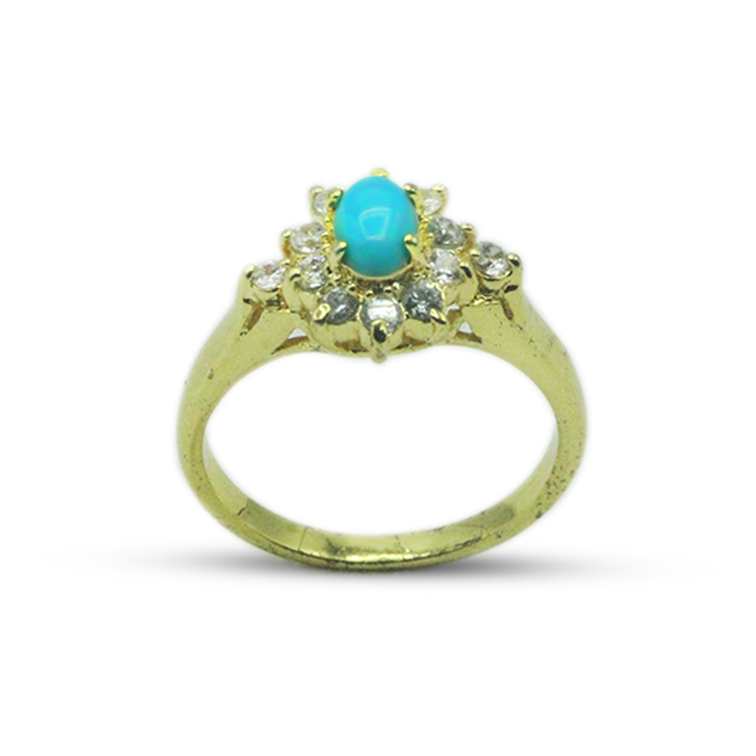 The Feroza Women Ring is the perfect way to celebrate your love. This Engagement Ring with gorgeous design by Jawa Gems has a stunning feroza gemstone around by a halo of zircon stones that sparkle. This engagement ring, which combines the ageless, romantic style with the feroza's natural beauty, is a true sign of your devotion, expertly crafted with remarkable attention to detail.