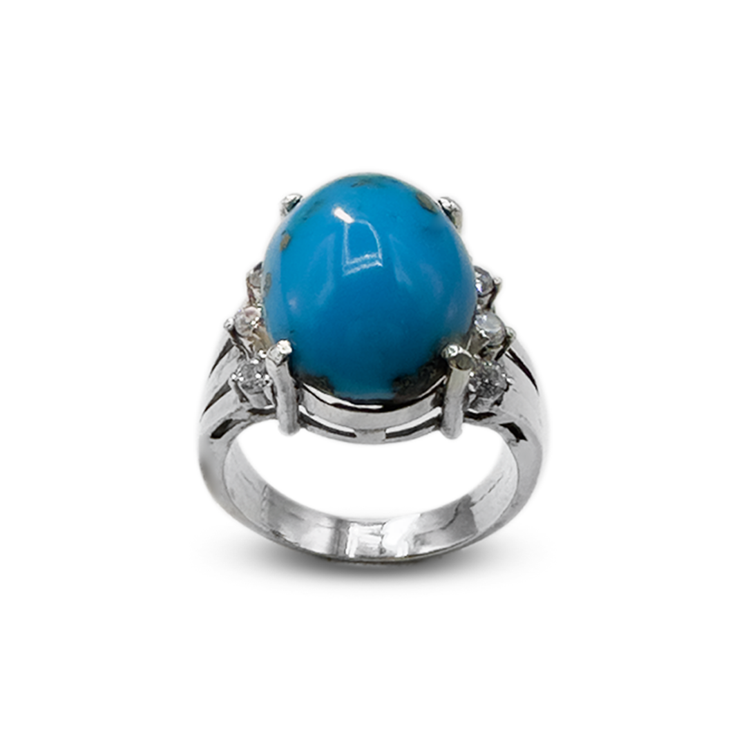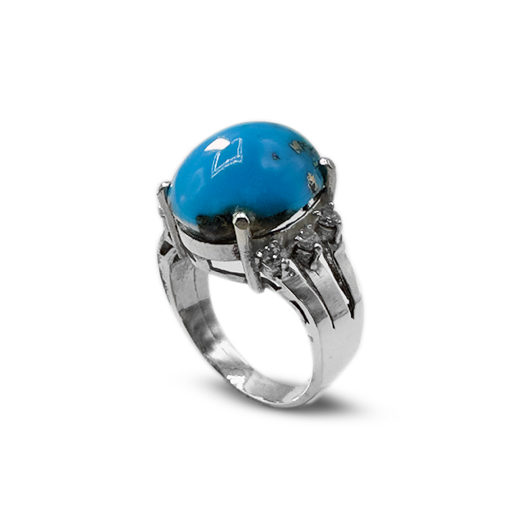 The Feroza Women Ring comes with 3 Line Band design and has a captivating feroza at the center, this stylish ring emphasizes the vivid, turquoise-colored stone's color with a simple, three-line band. The feroza by Jawa Gems is given center stage by the sleek, elegant design which results in a classic and adaptable item that fits well with any outfit.