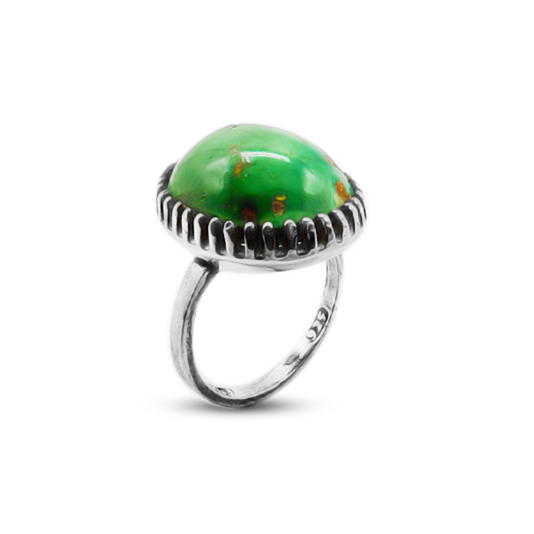 Choose the Feroza Women Ring to embrace the alluring beauty of nature. A fascinating feroza gemstone of this eye-catching accessory is delicately framed by a beautiful crown setting inspired by a pine tree. The brilliant, turquoise-like hue of the feroza is complemented by the delicate, textured metalwork, which beautifully depicts the organic forms of pine branches. The Pine Crown Ring by Jawa Gems results in a distinctive, nature-inspired design.