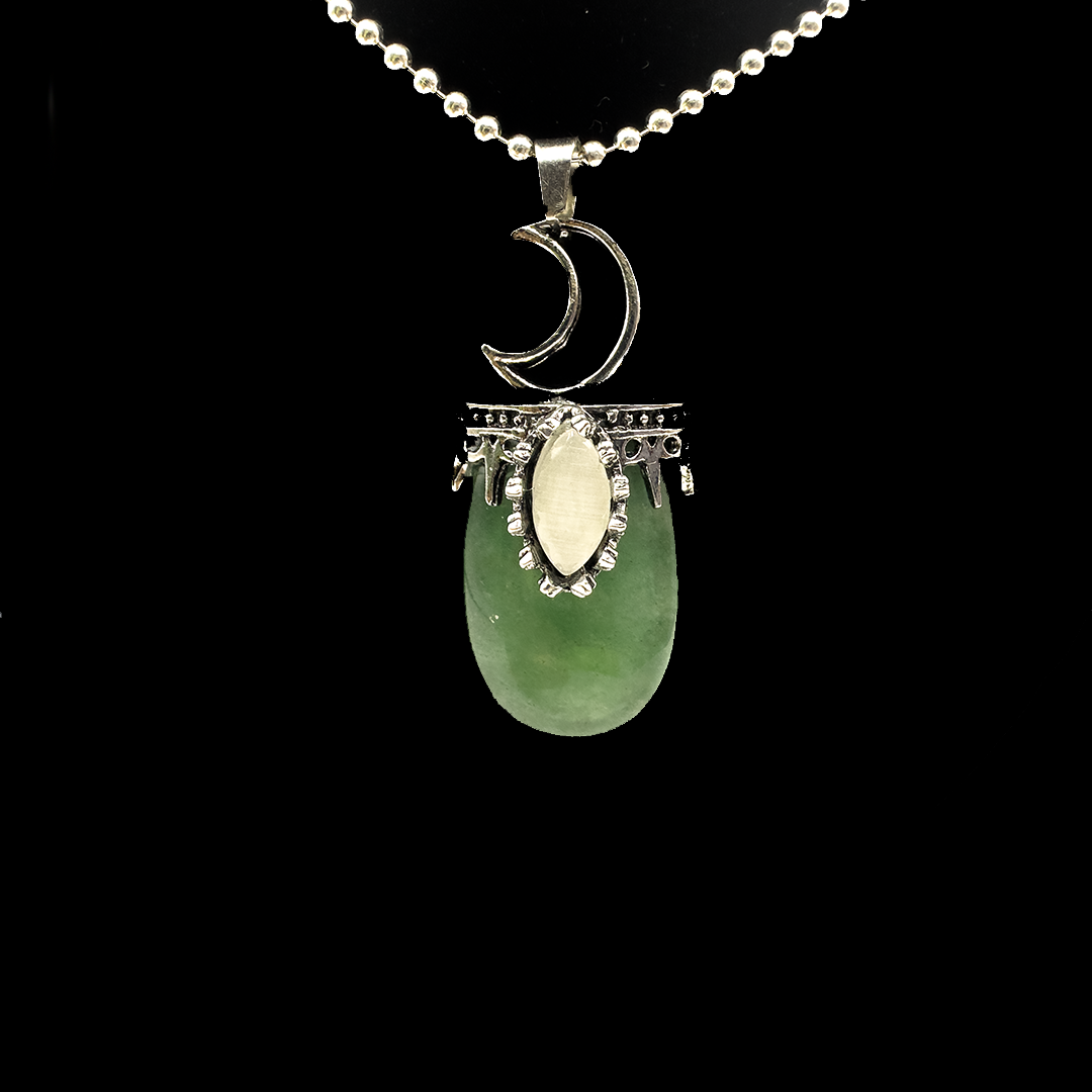 This Green Agate Pendant with Crescent Crown design is a perfect blend of mysticism and grace. Green Agate is known for its ability to bring emotional healing, reduce stress, and boost self-esteem. The crescent shape, paired with the stone, symbolizes new beginnings and spiritual growth. This pendant serves as both a beautiful accessory and a powerful tool for those looking to achieve balance, serenity, and personal transformation in their lives.