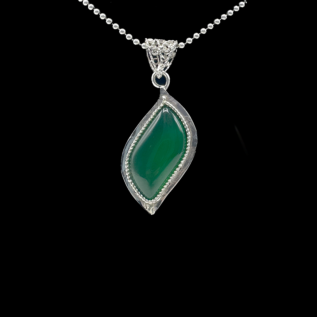 The Green Agate Pendant with Silver Patel Design offers a stunning mix of traditional craftsmanship and natural healing properties. Green Agate is associated with revitalization and emotional tranquility, helping to calm the mind and body while enhancing focus and creativity. The elegant silver Patel design elevates the piece, symbolizing protection and balance. This pendant is perfect for those seeking to manifest abundance, peace, and strength in their personal journey.