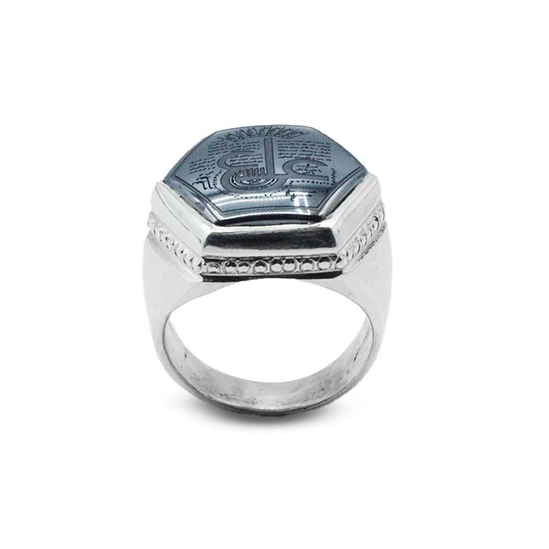The Hematite Men Ring by Jawa Gems in Hexagonal Zip Across design is a striking and modern piece of jewelry. The hematite stone adds a touch of enhancement, and the hexagonal shape and zip-across design combine to create a distinctive and eye-catching appeal. This Hematite Men Ring is ideal for people who enjoy wearing unique and modern jewelry.