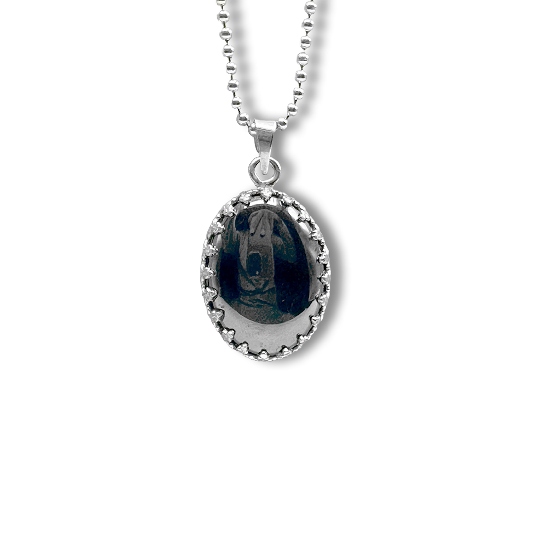 The Hematite Pendant - Crown Lattice is a regal and elegant piece that features a lattice design and a crown motif. Hematite is known for its grounding and stabilizing effects, and this pendant enhances mental clarity and strength. The silver setting adds an extra layer of sophistication, making it a perfect choice for those who appreciate both beauty and wellness.