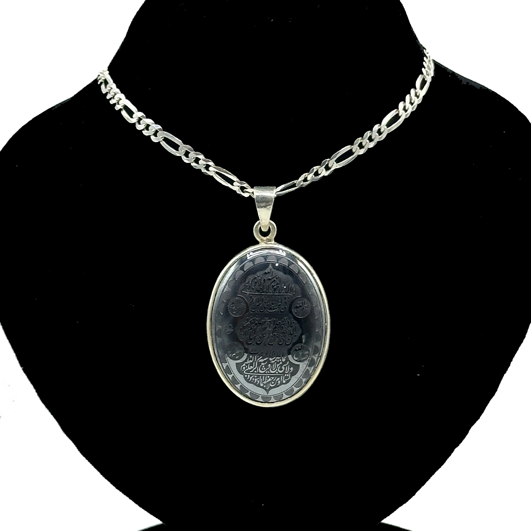 The Hematite Pendant - Religious Allure features a meaningful design that incorporates spiritual symbols, offering both protection and style. Hematite is known for its healing properties, promoting emotional balance and grounding. This silver pendant serves as a beautiful reminder of faith while providing the wearer with mental clarity and stability.