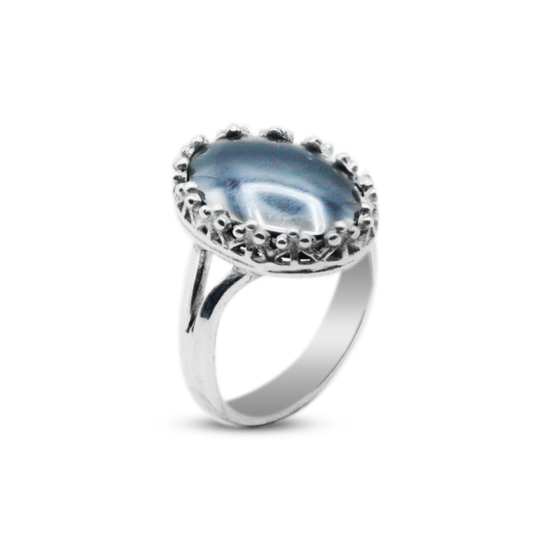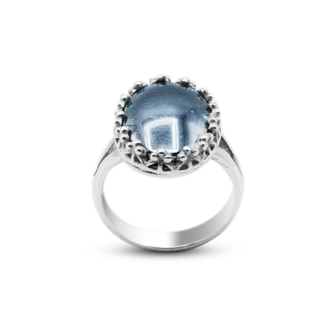 A work of art, the Hematite Women Ring in Lattice Design is offered by Jawa Gems. The lustrous hematite stone is perfectly displayed by the elaborate lattice pattern, giving it a distinctive and striking appearance. This Lattice Ring Design is ideal for people who value beautiful jewelry. It's perfect for special occasions or everyday wear.