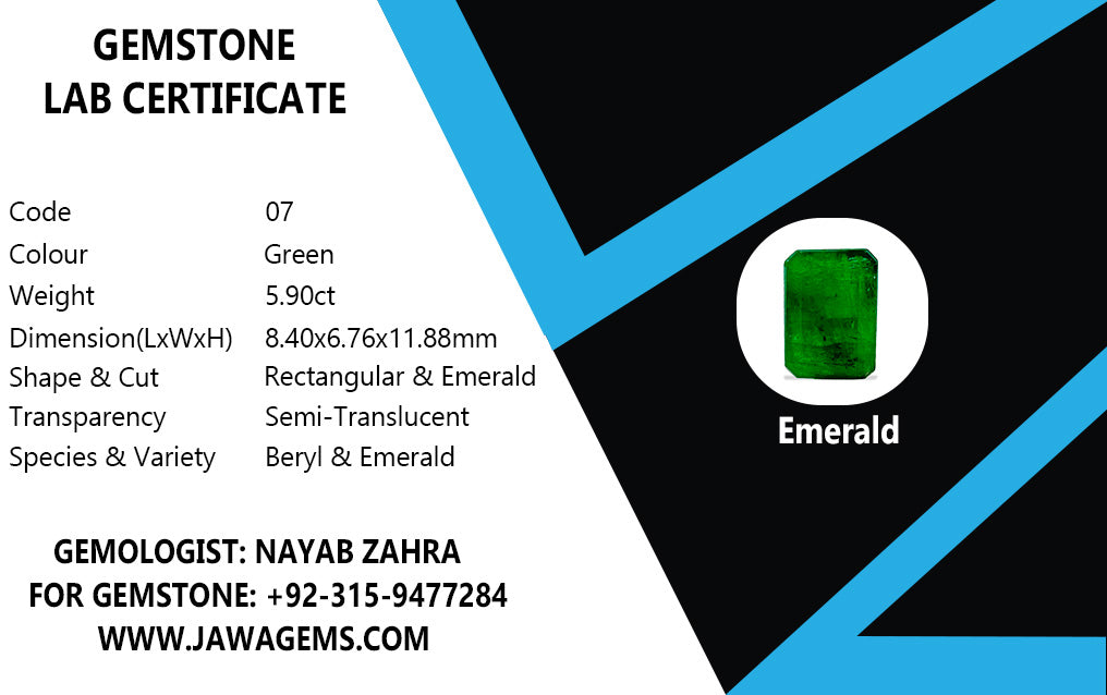This Lab Certified Emerald 5.9-carat from Jawa Gems is a stunning choice for gem enthusiasts and collectors. A premium Natural Emerald, it radiates rich green hues and carries trusted certification. Jawa Gems, a top name for Emerald in Pakistan, offers only the finest stones. Own a gem that blends natural beauty with professional assurance—an Emerald of rare quality and brilliance.