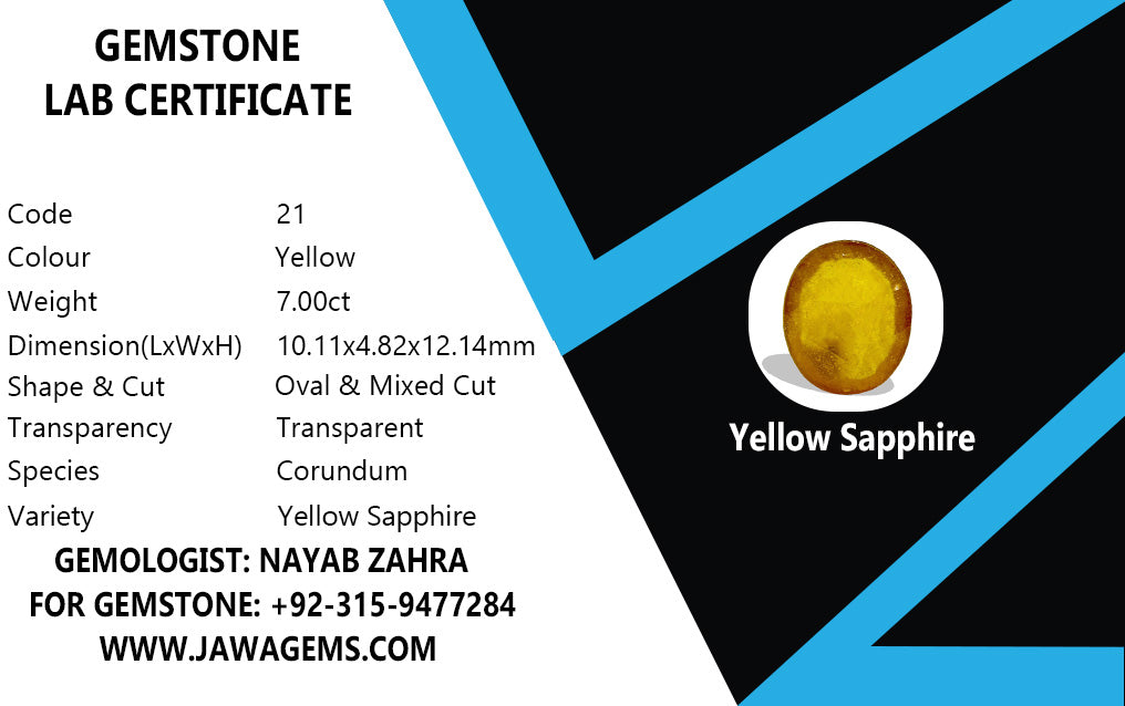This 7-carat Yellow Sapphire is a stunning natural gemstone, certified for authenticity. Known for enhancing clarity and intellect, it promotes wisdom and prosperity. Lab-certified and naturally sourced, this vibrant yellow sapphire brings positive energy, mental focus, and success to its wearer, making it a powerful talisman for confidence and clarity.