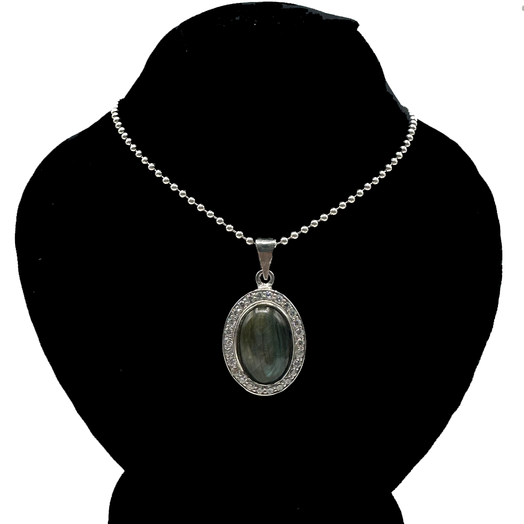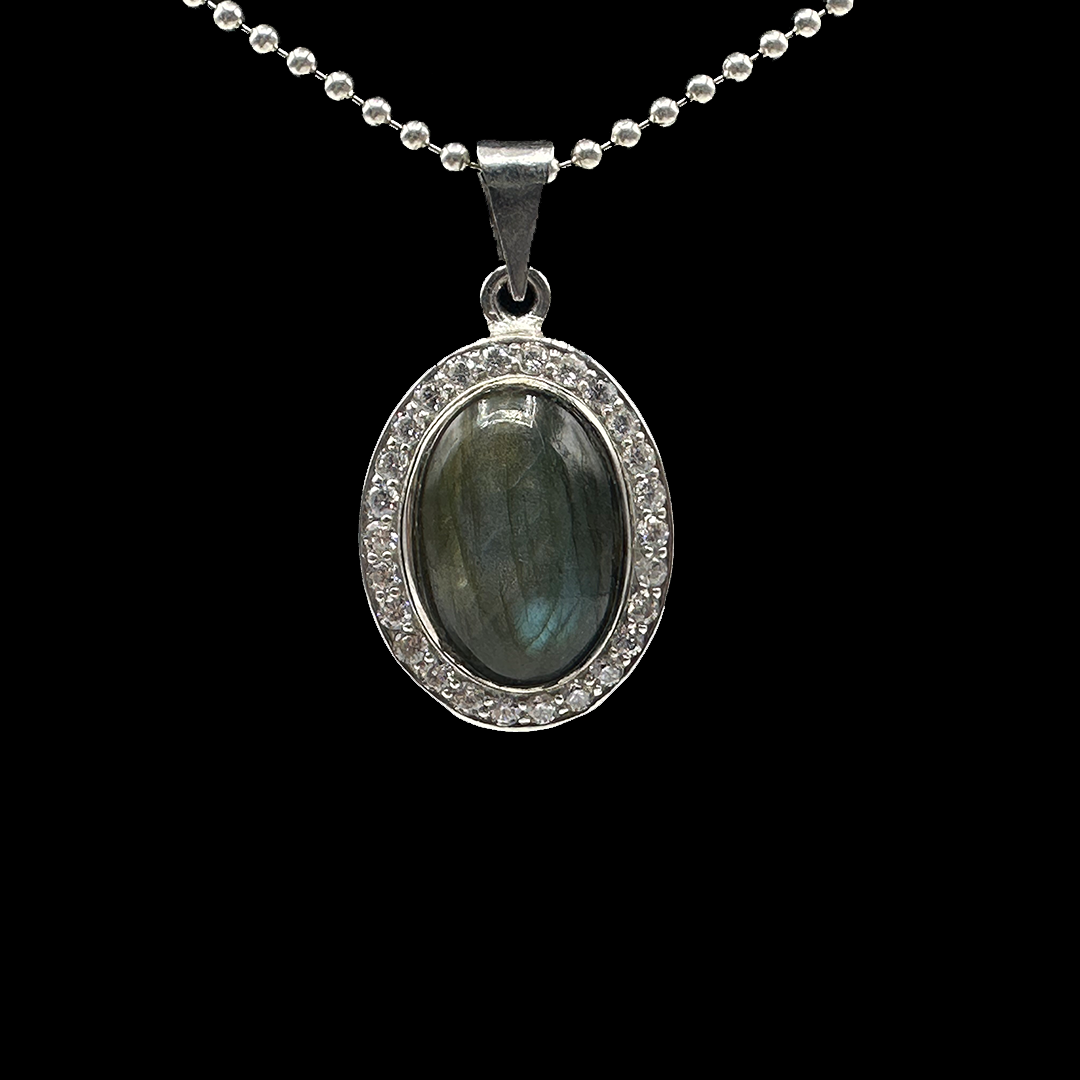 The Labradorite Pendant - Halo Frame features a stunning labradorite stone surrounded by a delicate silver halo frame. Known for its ability to enhance spiritual growth and intuition, labradorite is the perfect gemstone for those seeking protection and insight. The elegant design of the pendant makes it a perfect accessory for any occasion, offering both beauty and positive energy.