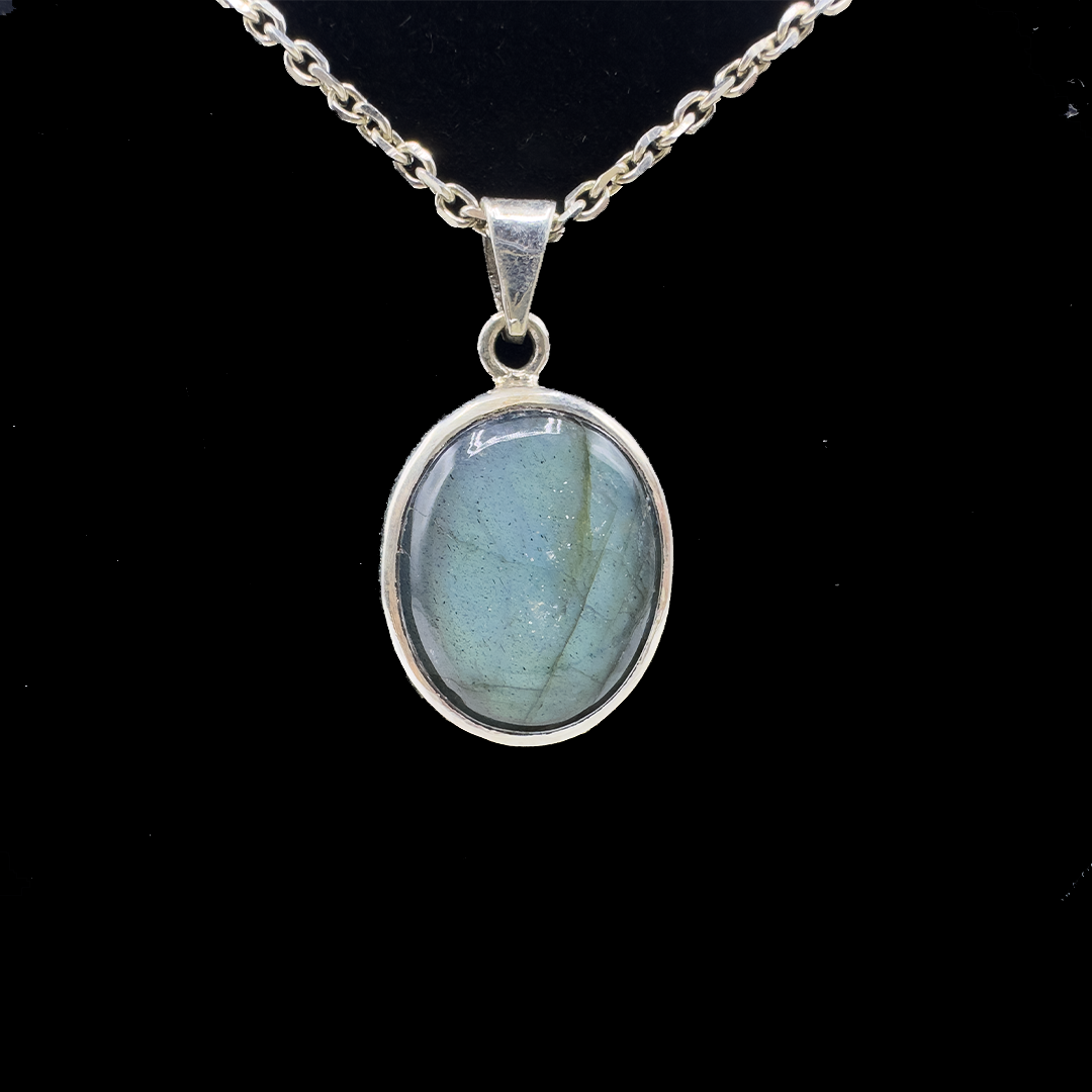 The Labradorite Pendant - Old School Oval offers a classic oval labradorite stone, radiating its distinctive blue-green shimmer. Labradorite is cherished for its grounding and protective properties. The retro silver design enhances the natural beauty of the stone, making this pendant a sophisticated choice for anyone seeking elegance with spiritual benefits.