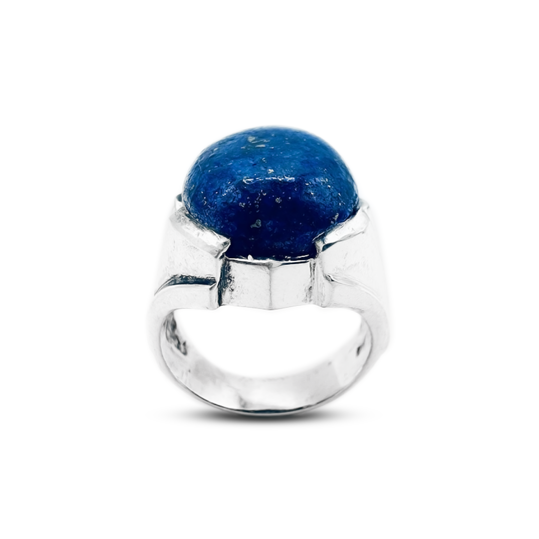 Bold and in command, such is the presence of the Jawa Gems Lapis Men Ring designed with a warrior band. The lapis lazuli stone is held in a strong, angular Worrier Band design, bringing up a look of power and dare. Contact us so that you possess this unique ring to make it your statement piece in your jewelry collection.