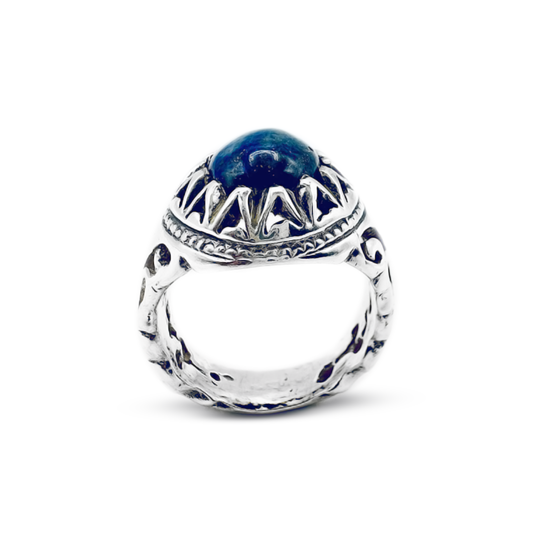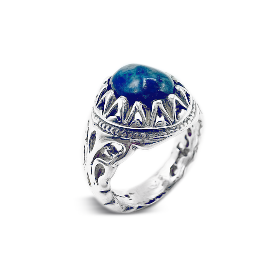 Revel in amiably sophisticated elegance with the Lapis Men Ring designed by Jawa Gems, embracing an old and classic ring design. The lapis lazuli stone in the ring has fitted into a classic, elegant band with very little effect on the natural beauty of the stone. This highly Traditional Ring Design and versatile piece can match perfectly well with any outfit and becomes a mandatory ring in your collection. Contact us so that you can have this timeless piece for your collection.