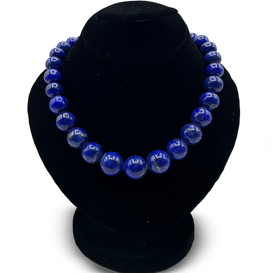 The Lapis Necklace - Spiritual Segment Mala by Jawa Gems features a beautiful arrangement of lapis lazuli beads, perfect for meditation and spiritual practices. Lapis lazuli is known to promote wisdom, boost self-awareness, and encourage emotional healing. Crafted in pure silver, this mala necklace is ideal for those seeking inner peace and enlightenment through their spiritual journey.
