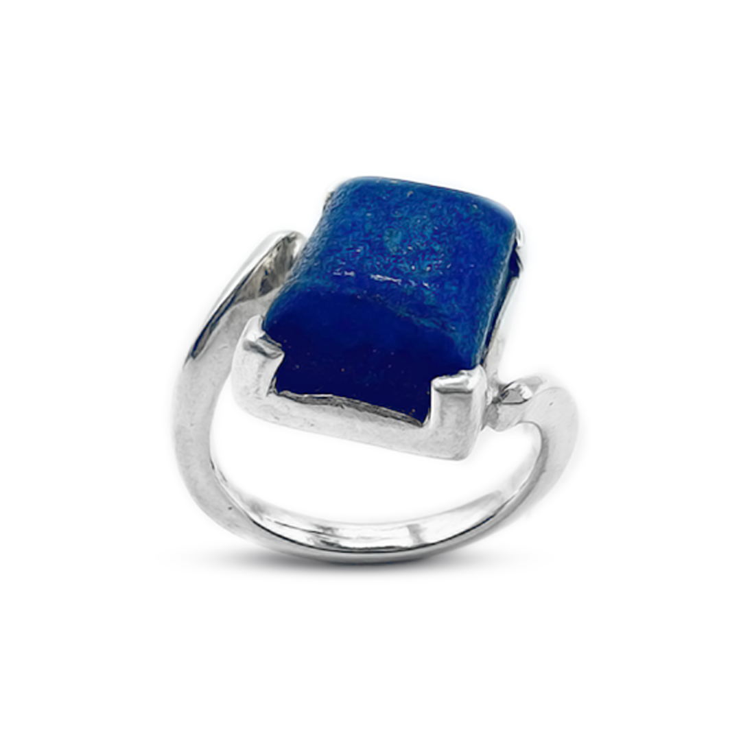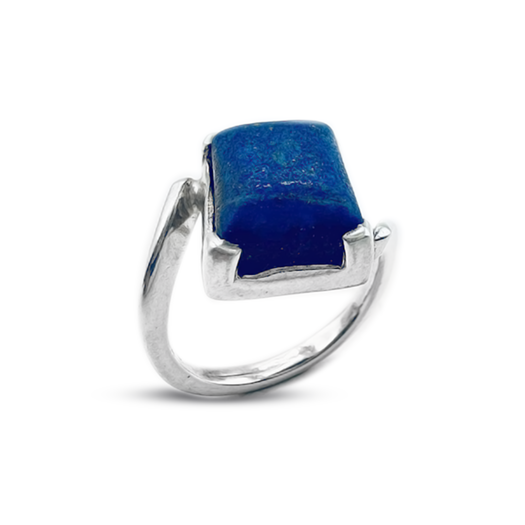 We are bringing you a Jawa Gems Lapis Women Ring bypass design that gives a modern twist to the classic. The lapis lazuli stone is framed by a Bypass Ring Design and an overlapping, unique band that creates a striking effect. Contact us to own this ring that adds elegance and modern flair to any outfit.