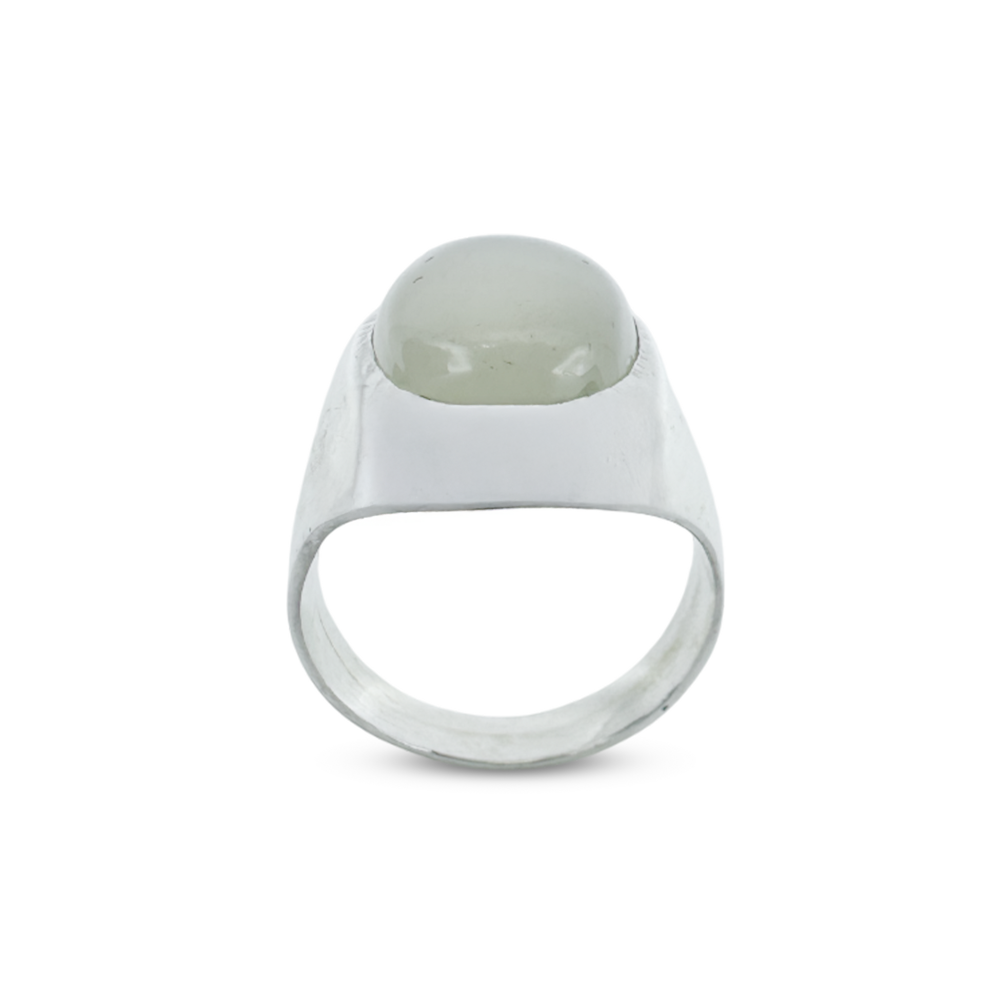 The Moon Stone Men Ring with a Plain Ring Design is made to give a clean and classic look. This ring features a glowing moonstone at the center, set on a smooth and simple band that highlights the stone naturally. The polished band by Jawa Gems reflects light softly and adds a neat finish. Its simple design and strong build make it a perfect choice for men who like elegant and everyday jewelry.