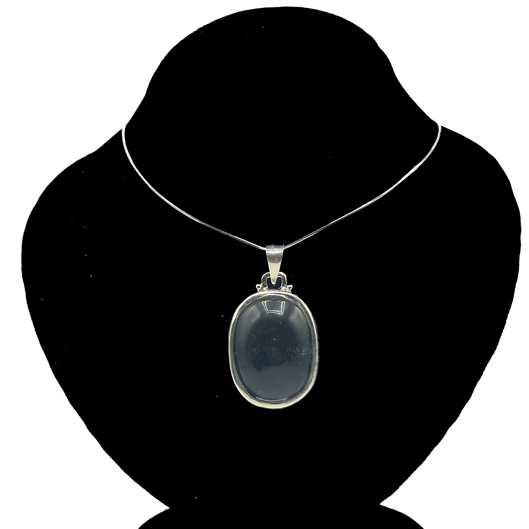 The Nephrite Pendant in Silver Egg Design presents a captivating fusion of silver and nephrite, creating a sleek and modern aesthetic. The egg shape symbolizes new beginnings and growth, with the rich green nephrite adding an element of calm and harmony to the design. A perfect pendant for any occasion.