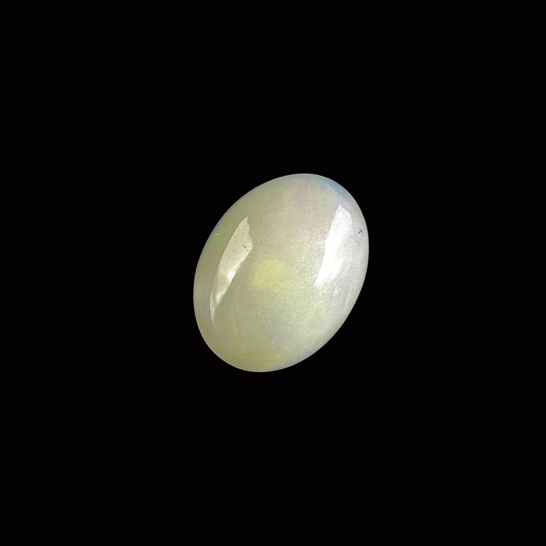 Opal is a captivating 2.8-carat gemstone known for its iridescent play of colors, ranging from vibrant blues and greens to warm reds and yellows. Formed from hydrated silica, opals are cherished for their unique patterns and flashes of light, often resembling a cosmic display.