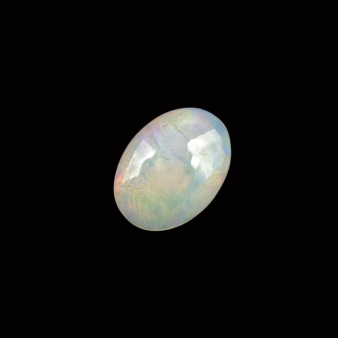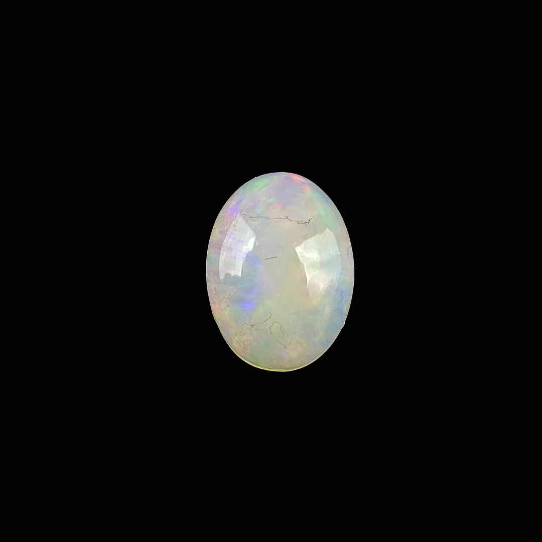 Opal is a captivating 2.45-carat gemstone known for its iridescent play of colors, ranging from vibrant blues and greens to warm reds and yellows. Formed from hydrated silica, opals are cherished for their unique patterns and flashes of light, often resembling a cosmic display.